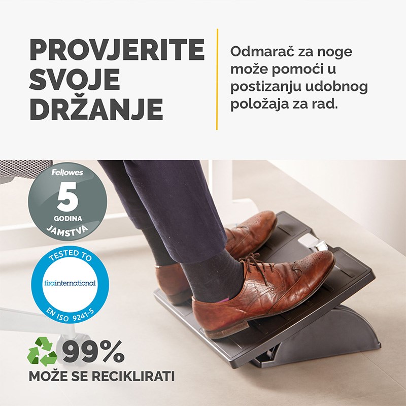 Podesivi odmarač za noge spriječava bolove u leđima i nogama potičući ispravno držanje tijela. Ugrađena Microban® antibakterijska zaštita bori se protiv rasta štetnih bakterija tijekom životnog vijeka proizvoda. Slobodno ljuljanje naprijed-nazad potiče cirkulaciju, a fiksirani položaj pruža čvrsti oslonac.