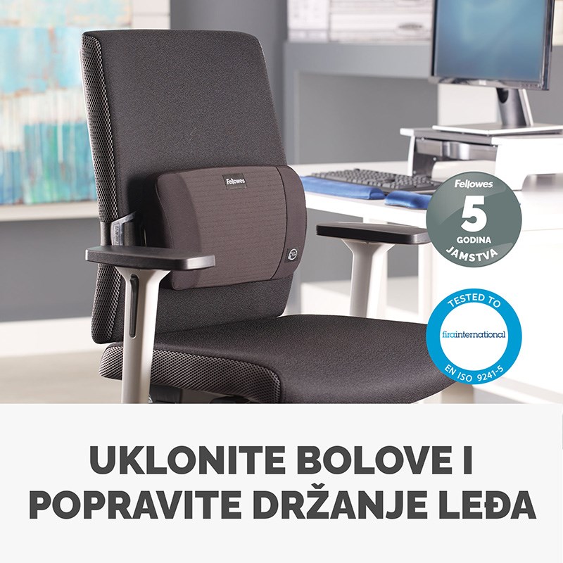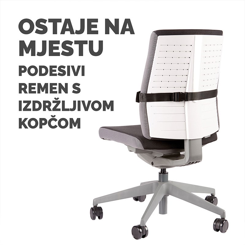 Sadrži tehnologiju FoamFusion ™ za maksimalnu udobnost i potporu lumbalnog dijela leđa za dulje vrijeme sjedenja. Podesiva traka s izdržljivom kopčom odgovara većini stolica.