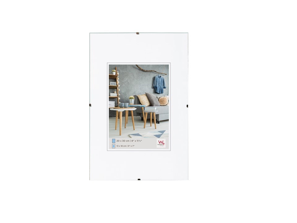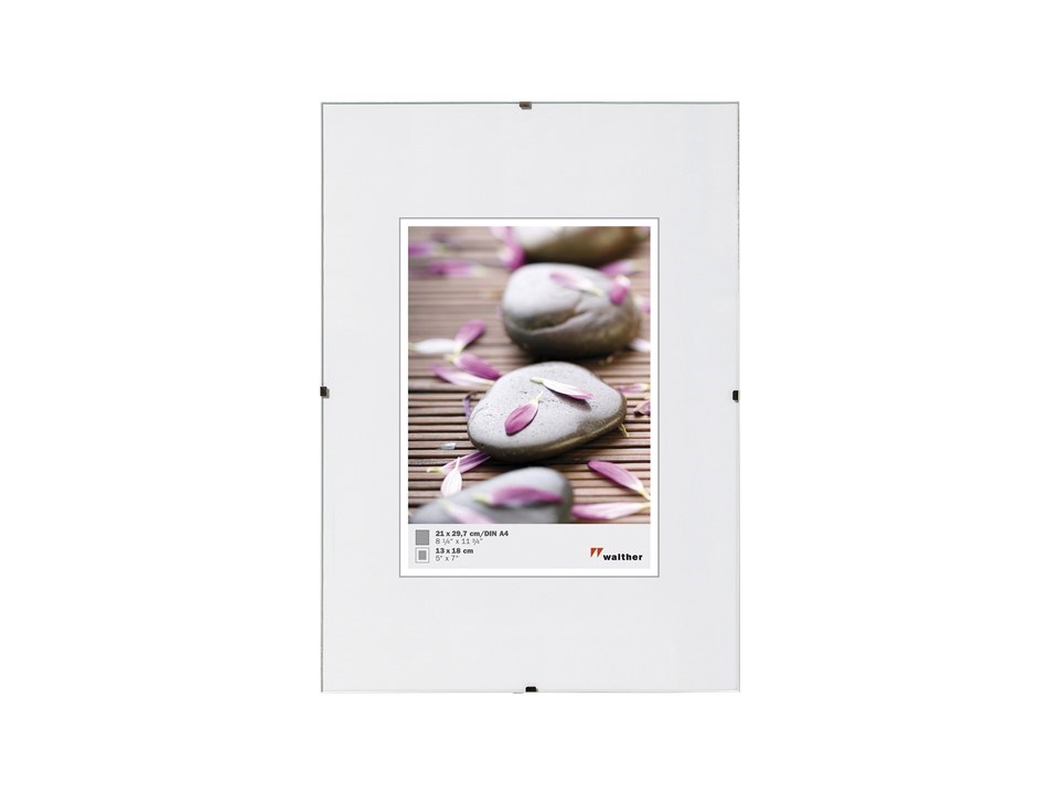 Naprijed staklo, iza čvrsta pozadina s kopčama za zatvaranje i paspartu za sliku (dimenzije u zagradi).