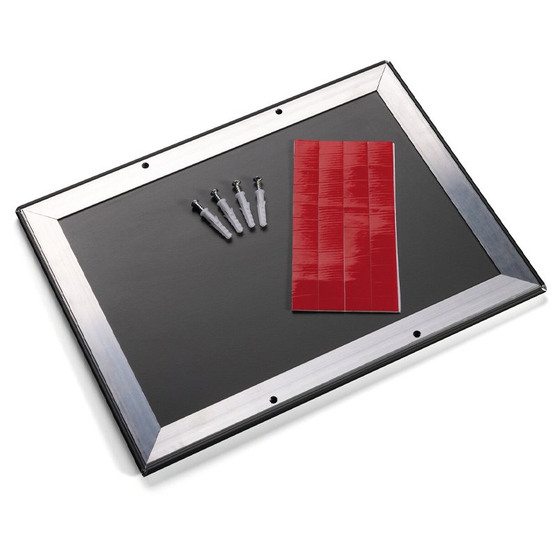 Predviđeno za korištenje u unutrnjim prostorima. Mogućnost postavljanja u portretnom i pejzažnom formatu. Skrivene rupe za pričvršćivanje na zid vijcima ili trajno ljepljenje s isporučenim samoljepljivim trakama. Uključuje montažni materijal (četiri vijka s tiplama te samoljepive montažne trake).