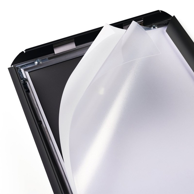 Kvalitetan i čvrst zidni okvir za umetanje postera, slika, obavijesti i drugo. Brzo i lako postavljanje sadržaja otklapanjem okvira (klik-klak).