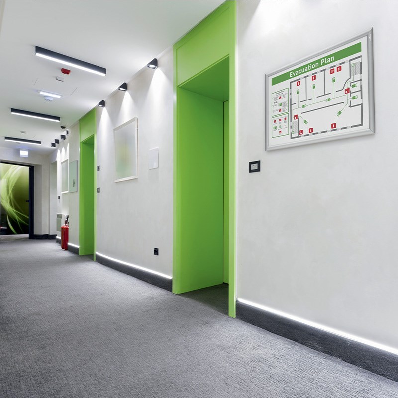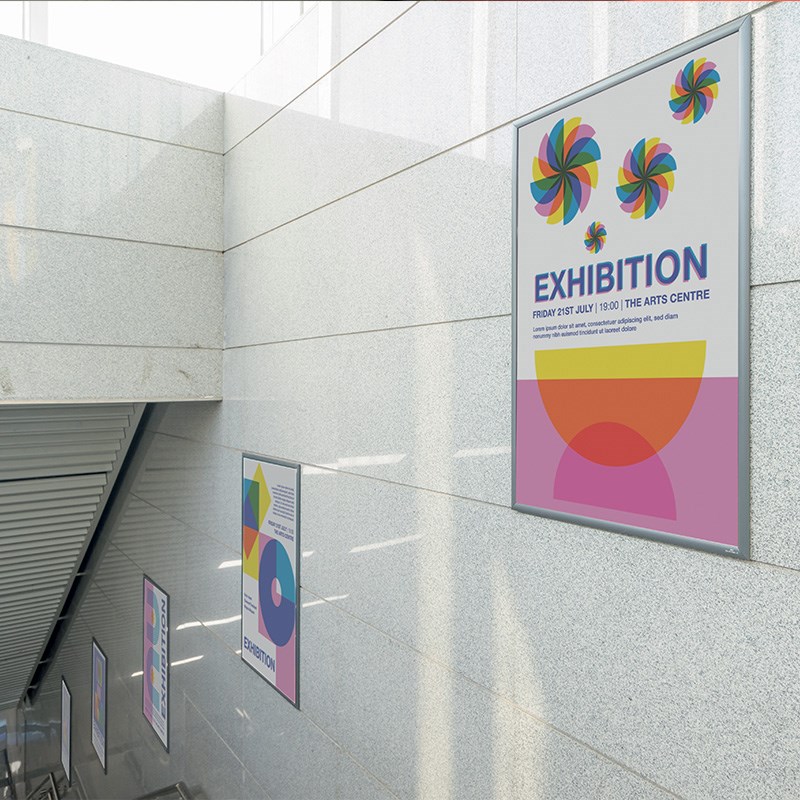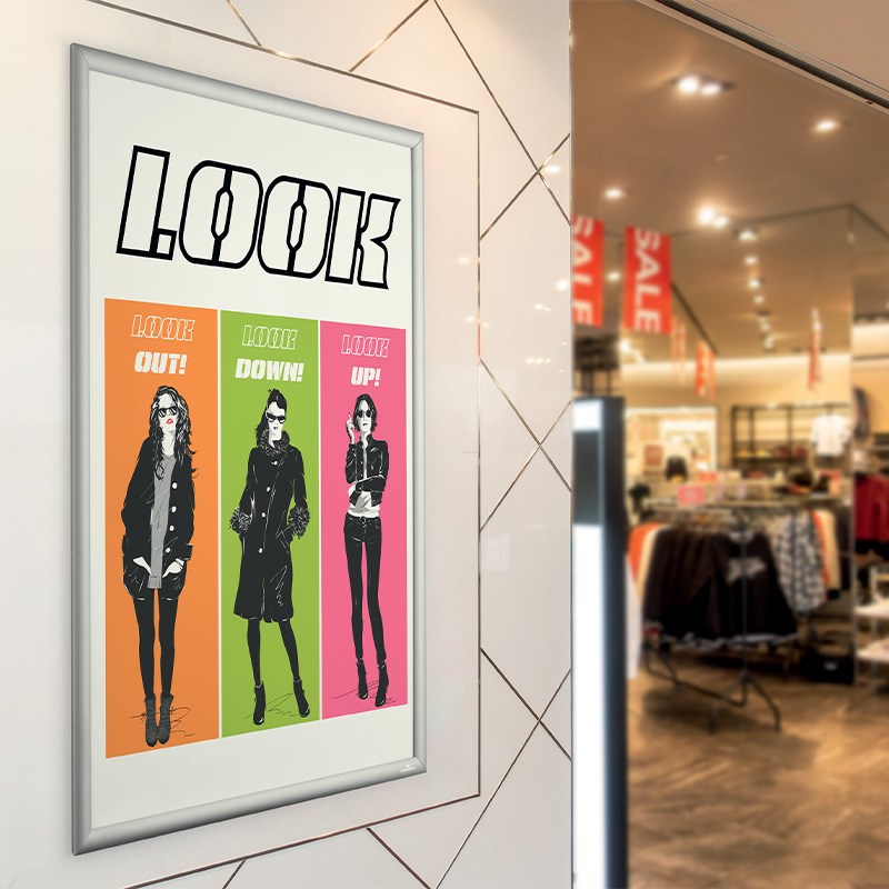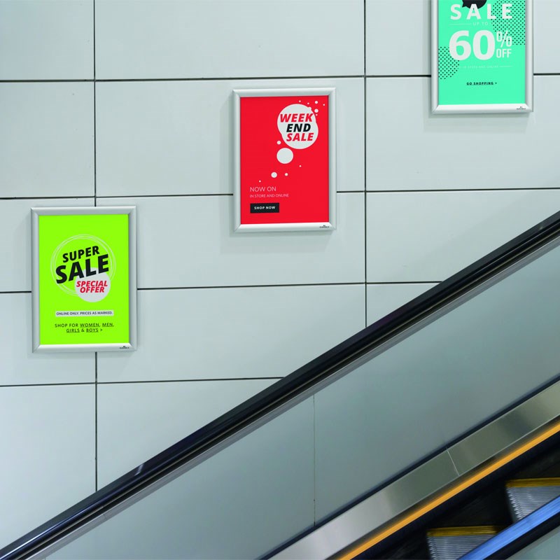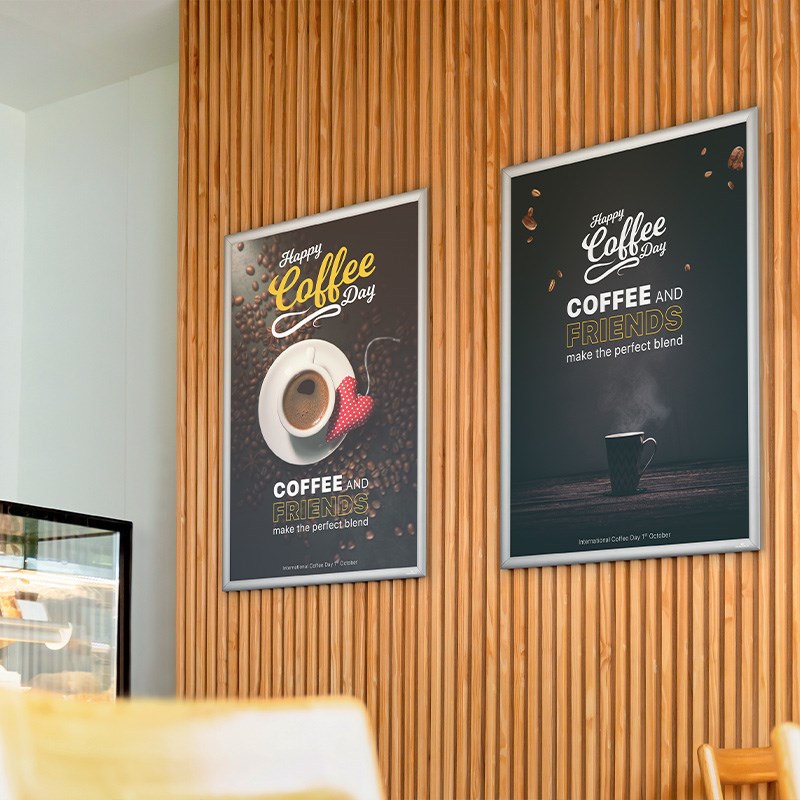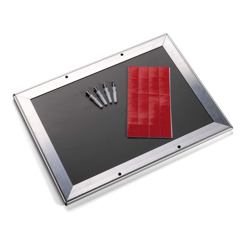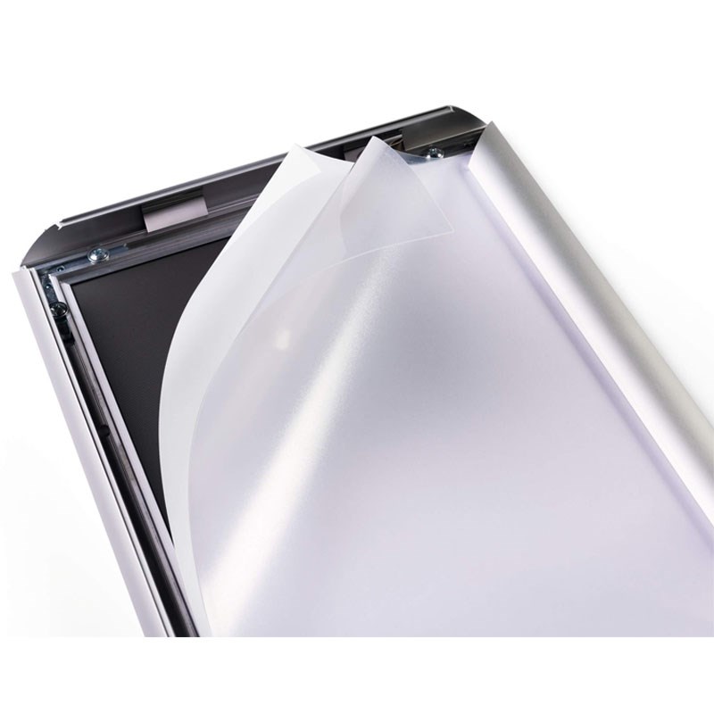 Kvalitetan i čvrst zidni okvir za umetanje postera, slika, obavijesti i drugo. Brzo i lako postavljanje sadržaja otklapanjem okvira (klik-klak).