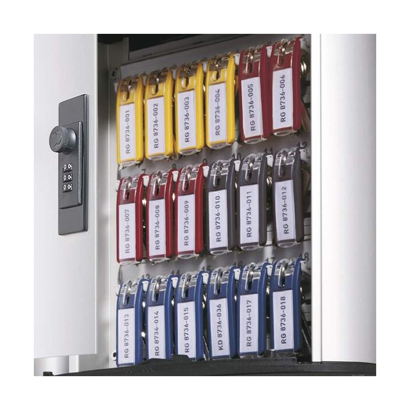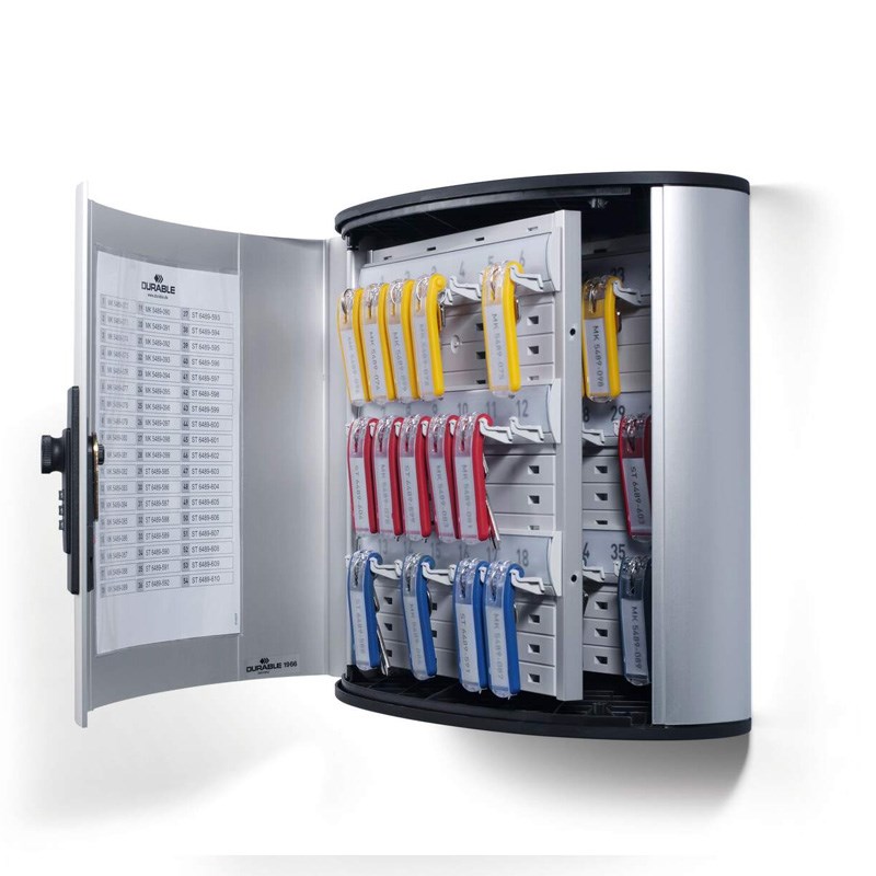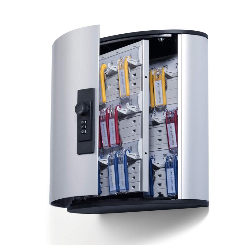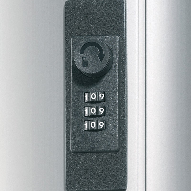 Elegantni ormarić za ključeve izrađen od aluminija s s bravom na troznamenkastu šifru. Šifra za otključavanje može se namjestiti na bilo koju od 1000 kombinacija. Lak pristup i izvrstan pregled kad se koriste KEY CLIP privjesci. Kapacitet 36 privjesaka.