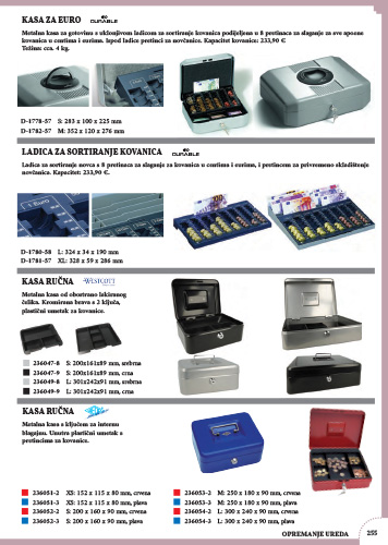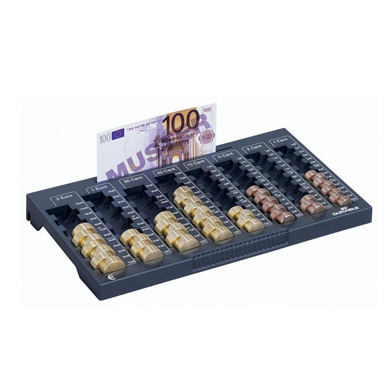 Umetak za ladicu za sortiranje euro novca s 8 pretinaca za slaganje za kovanica u centima i eurima, i pretincem za privremeno skladištenje novčanica. Kapacitet: 233,90 €