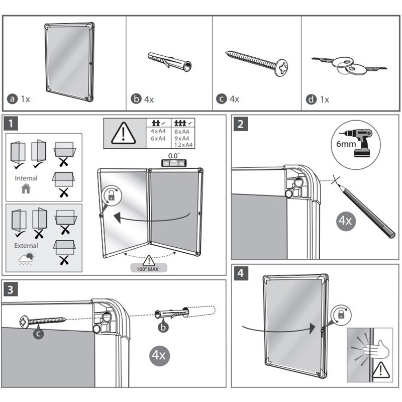 Oglasni ormarić s magnetnom bijelom pločom za obavijesti 6xA4 formata. Aluminijski okvir, visokokvalitetno zaštitno staklo, brava s 2 ključa, pribor za montažu. Za vanjsku upotrebu.