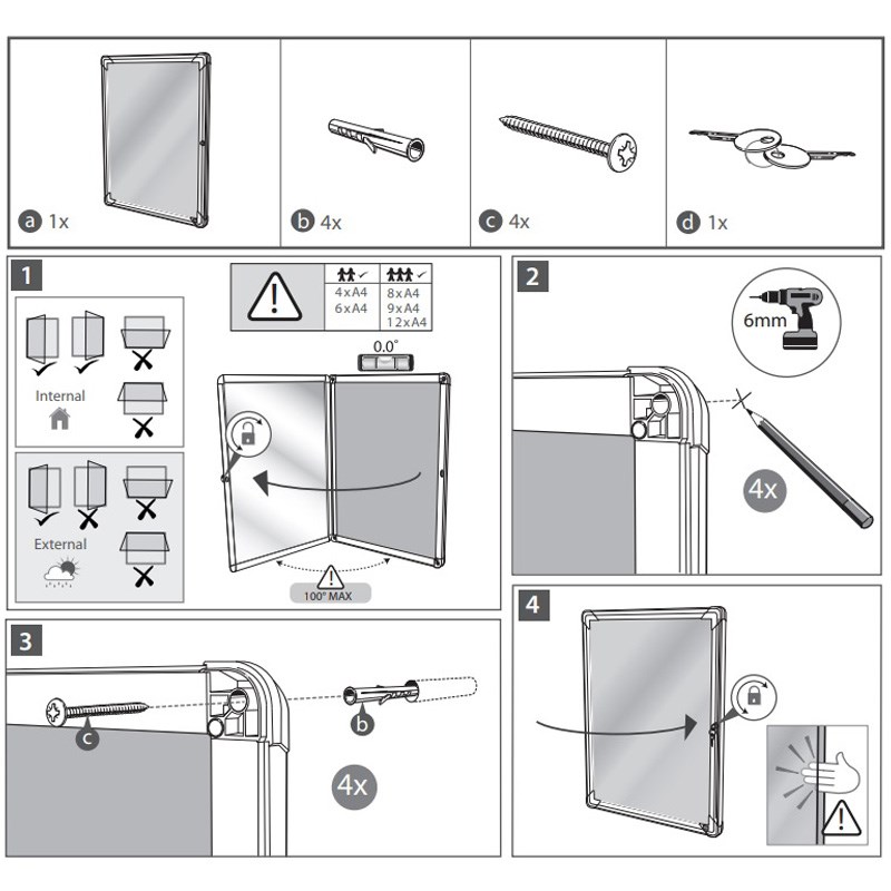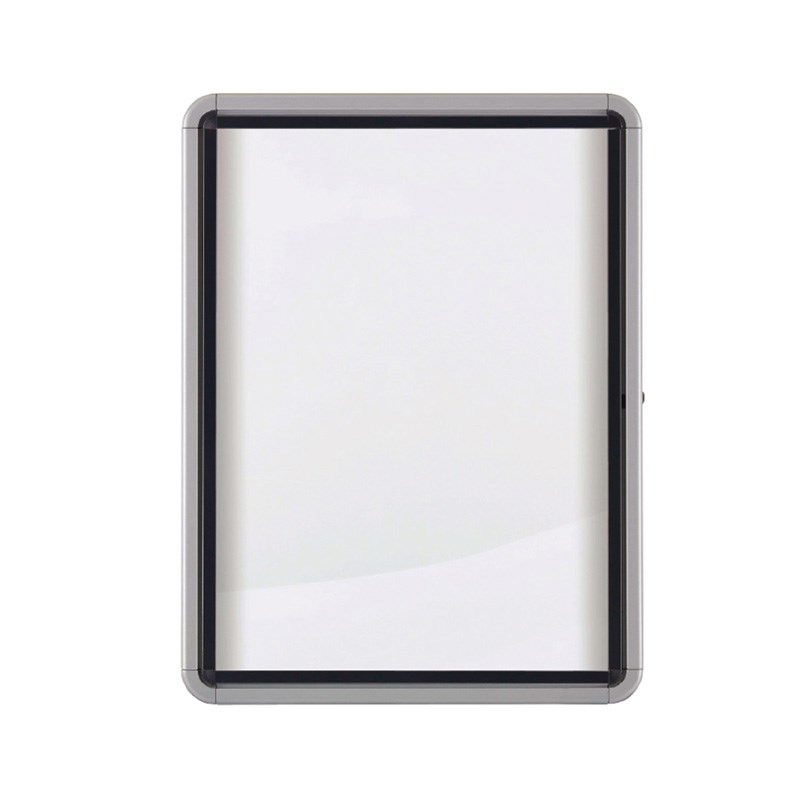 Oglasni ormarić s magnetnom bijelom pločom za obavijesti 9xA4 formata. Aluminijski okvir, visokokvalitetno zaštitno staklo, brava s 2 ključa, pribor za montažu. Za vanjsku upotrebu.