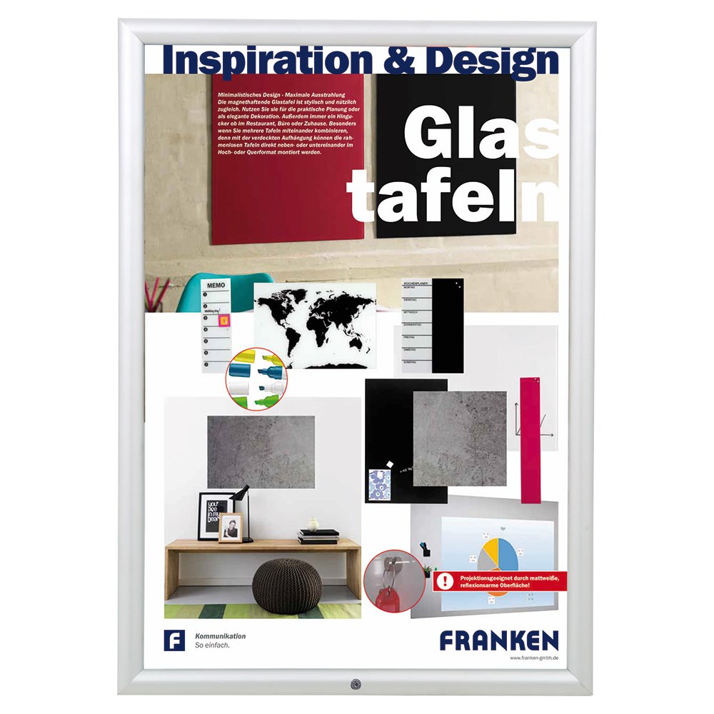 Vodonepropusni aluminijski okvir na klik, zaključavanje imbus ključem. Anti-refleksna zaštitna folija s UV-filterom, pozadina od polistirena. Pribor za montažu na zid uključen.