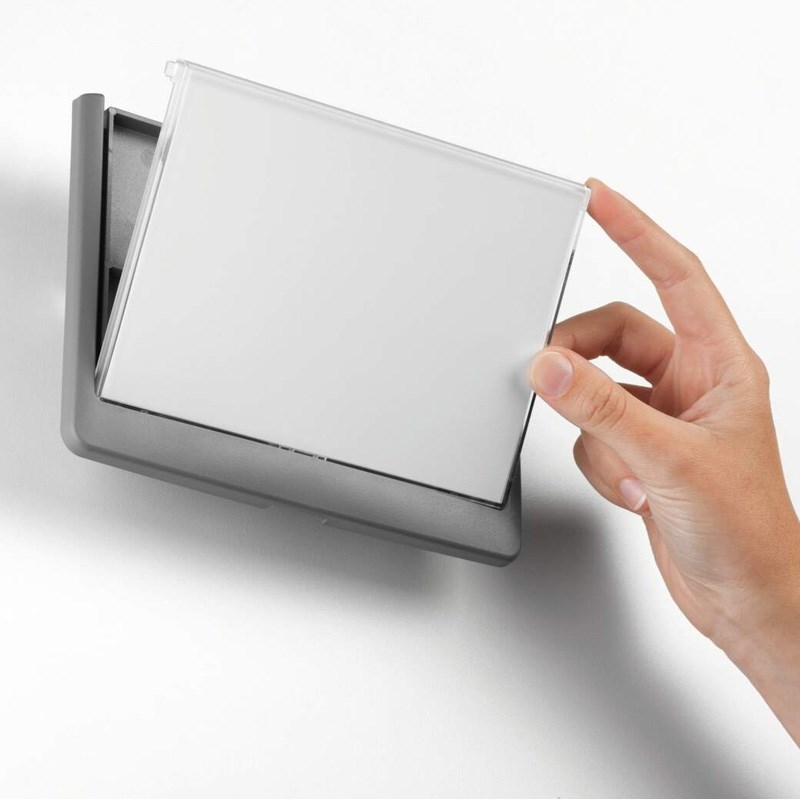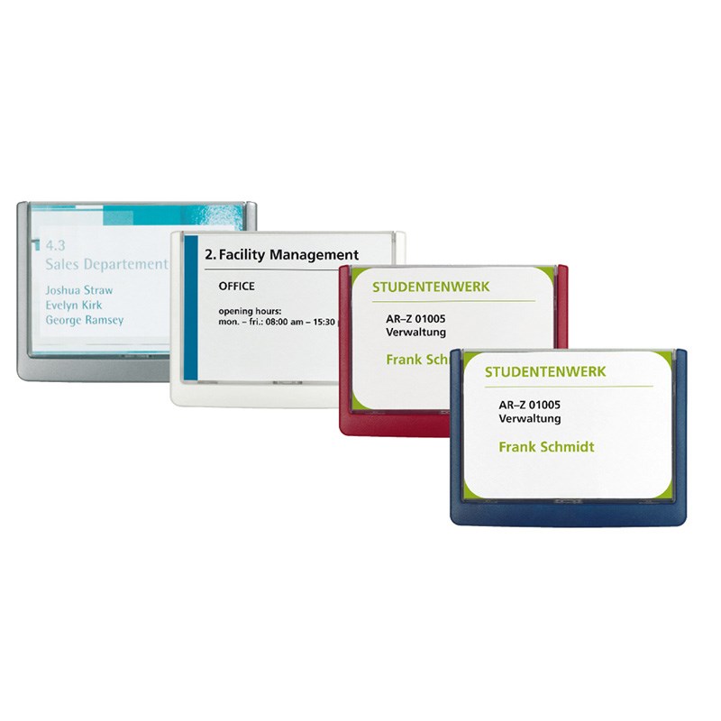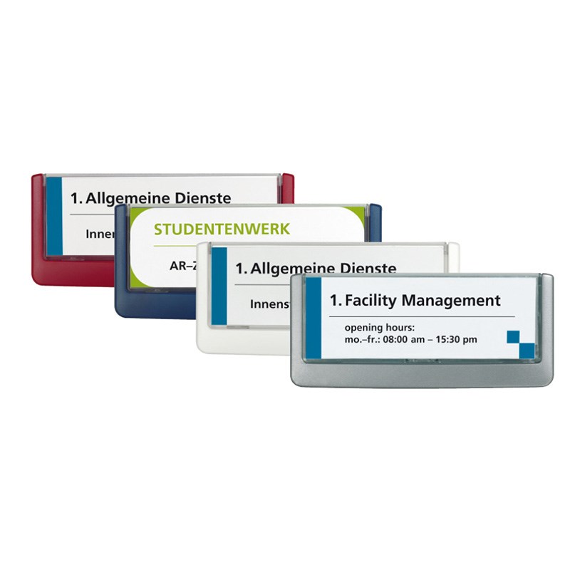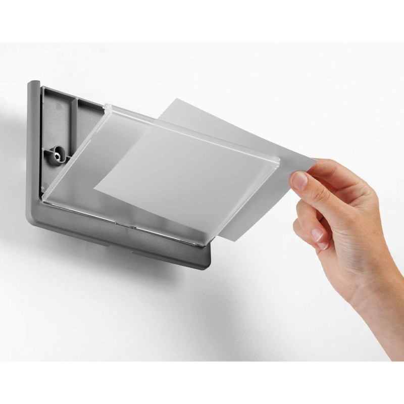 Elegantne ploče napravljene od visoko kvalitetne plastike u boji. Uz svaki model dolazi karton, koji se mijenja jednostavnim povlačenjem transparentnog panela, komplet vijaka i tipli te samoljepiva obostrana traka.