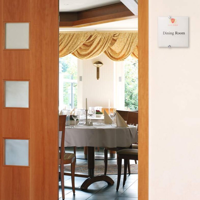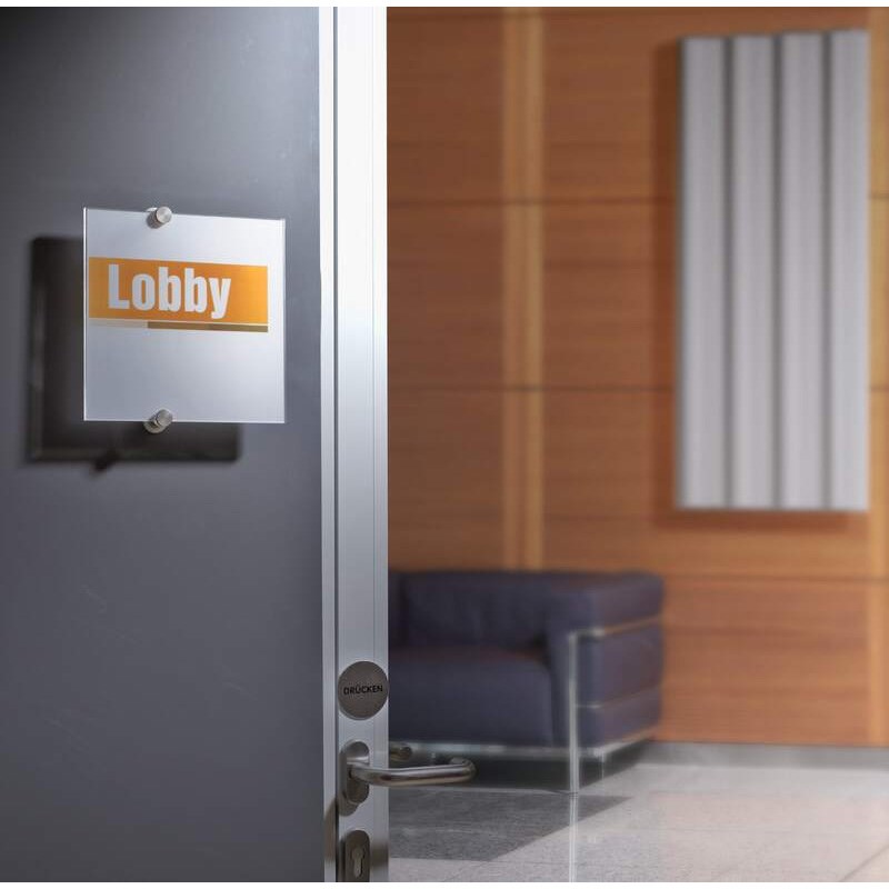 Komplet sadrži vijke za montažu na vrata ili zid te poluprozirni umetak za ispis natpisa na laserskom pisaču.