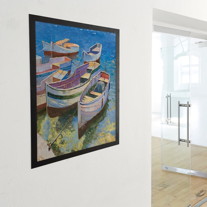 Obje strane okvira u istoj boji - pogodno za postavljanje na izlog, prozor i slično gdje je materijal vidljiv s obje strane.