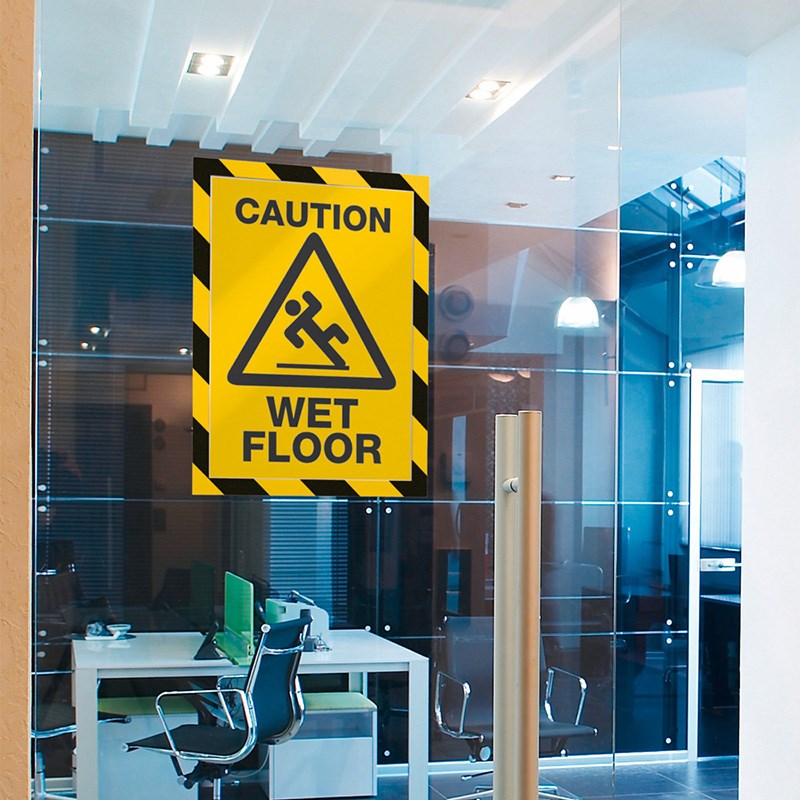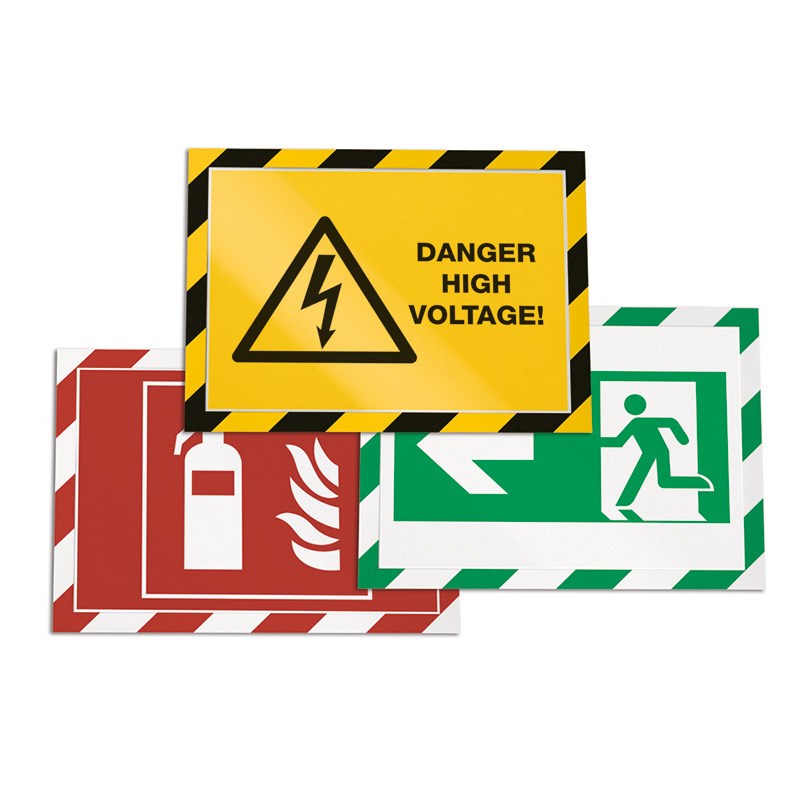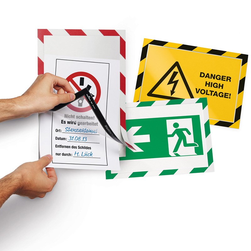 Samoljepiva okvir-košuljica s dvobojnim signalnim rubom za umetanje znakova i obavijesti.