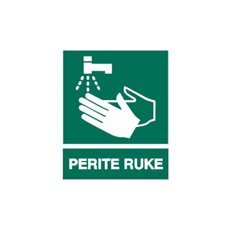 Naljepnica s obavijesti u obveznom pranju ruku.