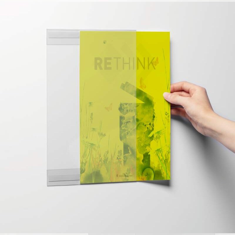 Samoljepivi okvir za postere, reklame, obavijesti i ostale informacije za korištenje u portretnom formatu na glatkim i neravnim površinama (čiste i stabilne).