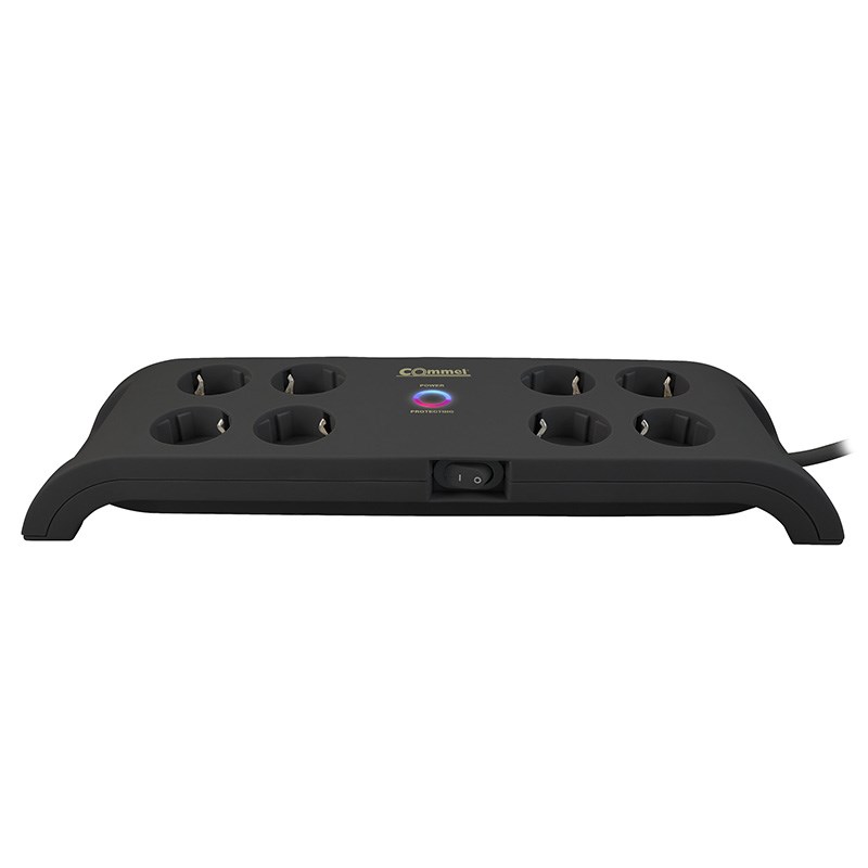 Prenosivi produžni kabel s 8 utičnica + 2 USB i prekidačem te zaštitom od prenapona i preopterećenja 16A, 250V, 3500W.