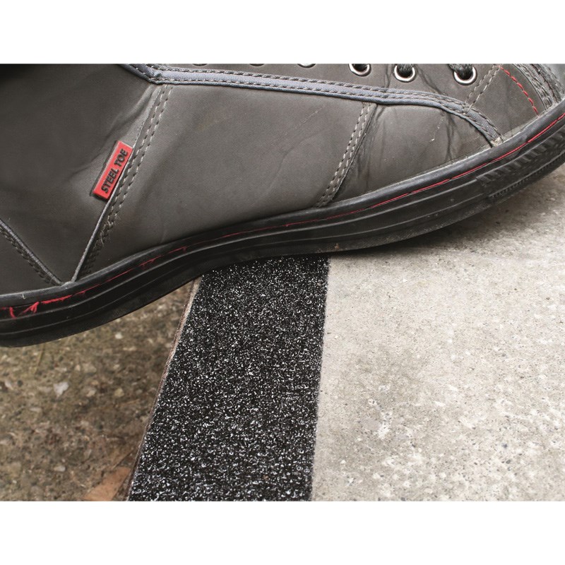 Gruba samoljepljiva protuklizna traka za poboljšanu sigurnost staza i gazišta u industrijskim područjima. Prikladno za korištenje na izloženim površinama u zatvorenim i zaštićenim vanjskim prostorima. Protuklizni premaz pomaže u osiguravanju staza i stepenica. Grube granule pružaju trajnu otpornost na klizanje čak i kada su jako zaprljane i podvrgnute intenzivnoj uporabi. Idealno za stepenice, rampe, industrijske podove i gazne površine na na strojevima i vozilima.