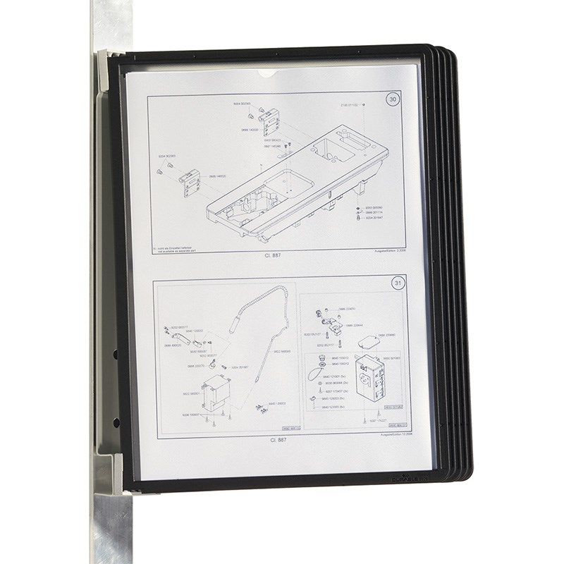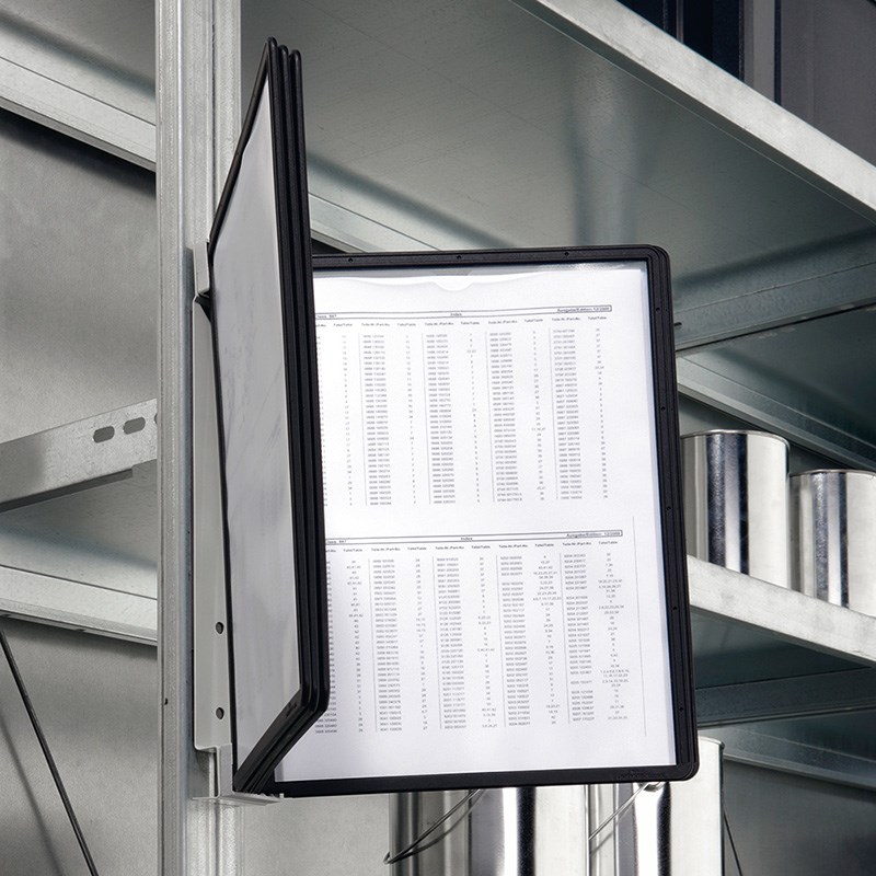 Magnetni metalni zidni nosač s 5 SHERPA® preglednih mapa A4. Brza i jednostavna montaža ili premještanje na metalne površine (metalni nosači, regali, police, strojevi, metalni ormari,...).