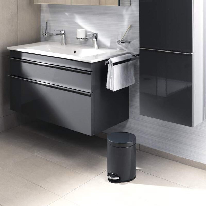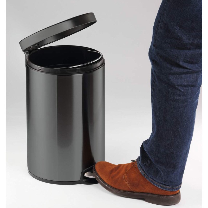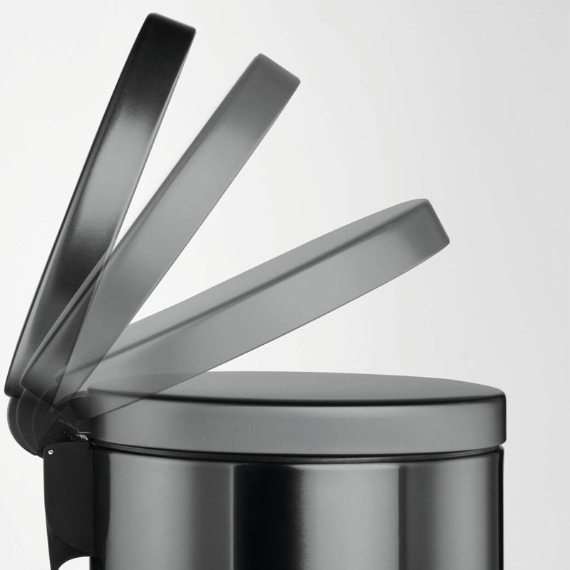 Kanta za otpatke od metala lakiranog prahom. Plastično postolje za odličnu stabilnost i zaštitu od korozije. Otvaranje poklopca pomoću nožne pedale, usporeno tiho zatvaranje.