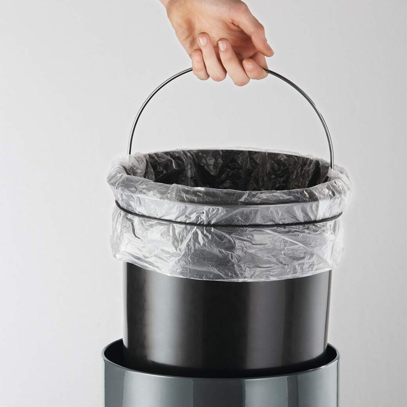 Odvojiva unutarnja kanta s ručkom, gumeni prsten za fiksiranje vrećice za smeće. Integrirana rukohvat za nošenje na šarki poklopca.