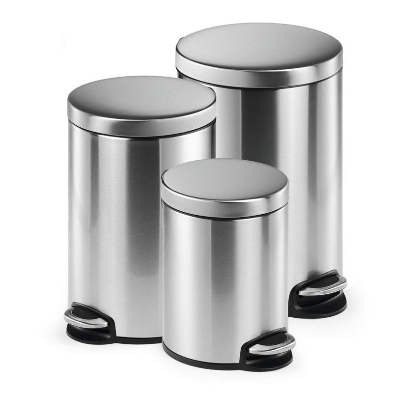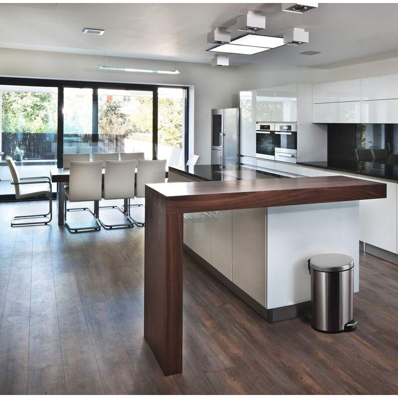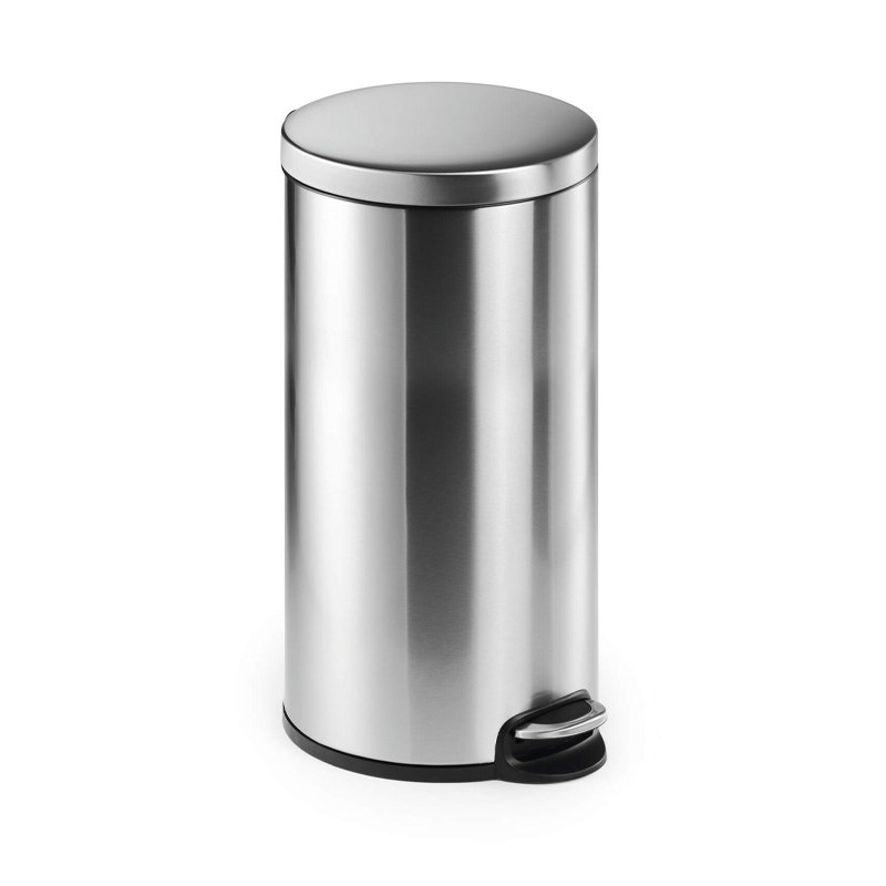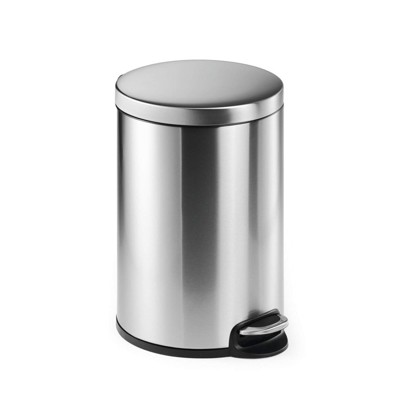 Kanta za otpatke od nehrđajućeg čelika s premazom protiv otisaka prstiju. Plastično postolje za odličnu stabilnost i zaštitu od korozije. Otvaranje poklopca pomoću nožne pedale, usporeno tiho zatvaranje.