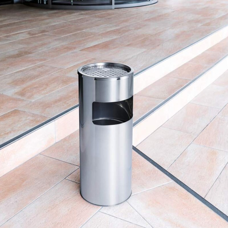 Visokokvalitetni koš od nehrđajućeg čelika s 17 litarskom kantom za pražnjenje i 2 litarskom pepeljarom s pijeskom. Pogodan za unutarnje i vanjske prostore. Jednostavno čišćenje. Ekološki materijal. Gumena zaštita na dnu. Jamstvo 5 godina.