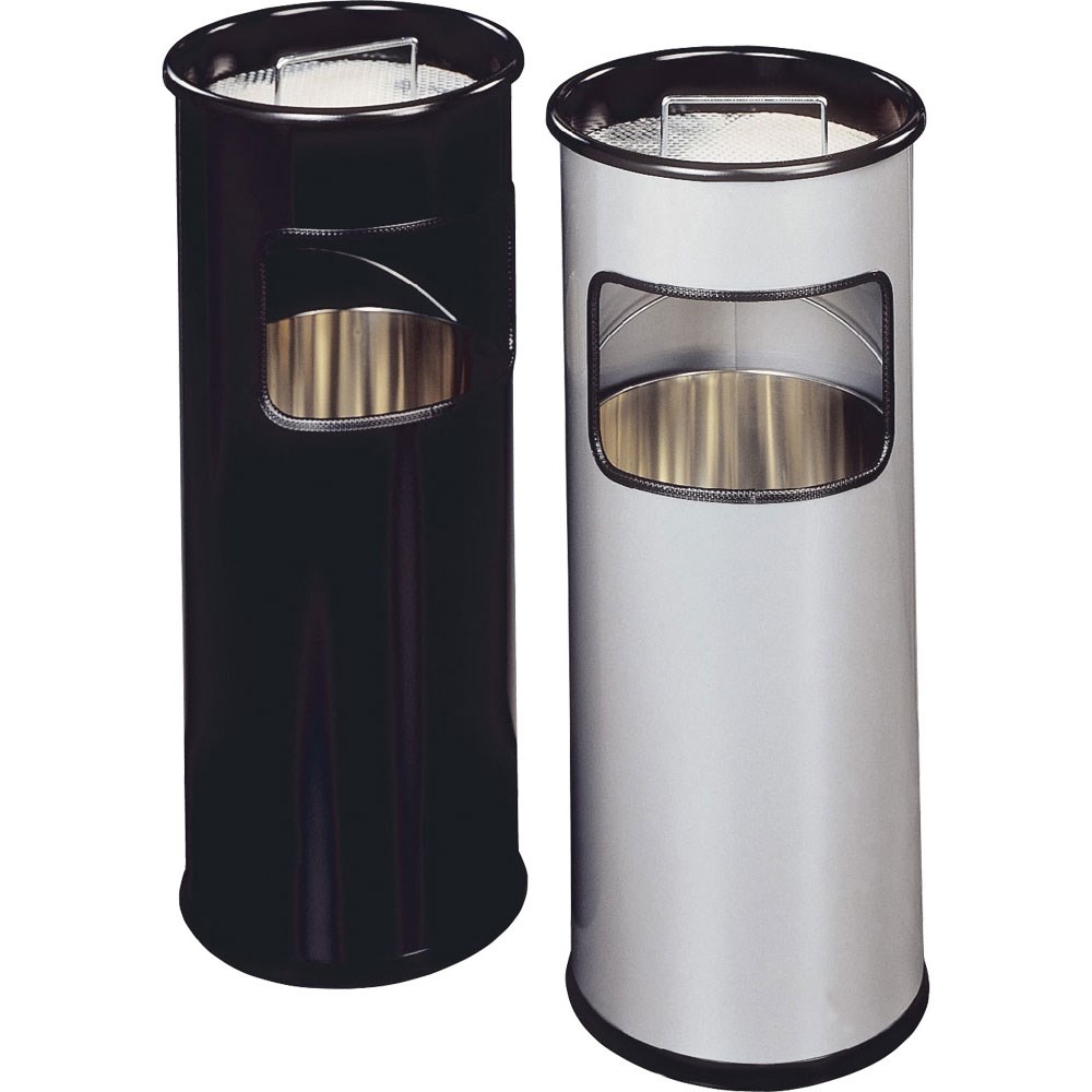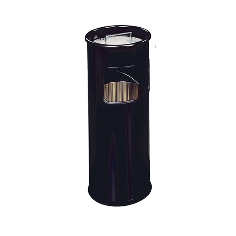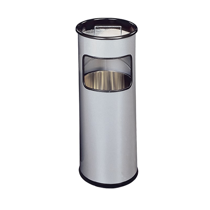 Metalni koš za smeće od 17 litara s integriranom pepeljarom od 2 litre. Okrugla košara za otpatke s uklonjivim pocinčanim umetkom za jednostavno pražnjenje i čišćenje. Pepeljara od aluminija sa žičanim umetkom, kompletna s pijeskom od 1,5 kg.