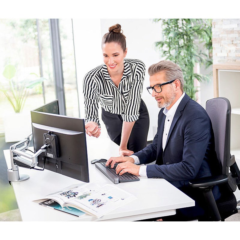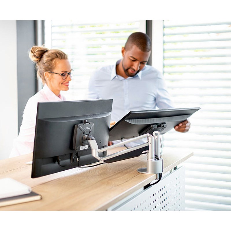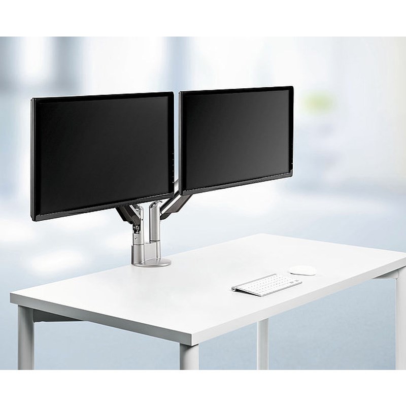 Novus CLU Duo nosač za dva monitora s plinskom oprugom za jednostavno, ergonomsko podešavanje i paralelno korištenje.