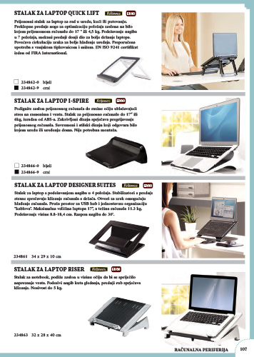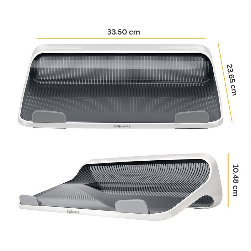 Stalak za prijenosno računalo do 17“ ili 6kg, izrađen od ABS-a. Zakrivljeni dizajn sprječava pregrijavanje prijenosnog računala. Suvremeni i stilski dizajn koji odgovara bilo kojem uredu ili uređenju doma. Nije potrebna montaža.