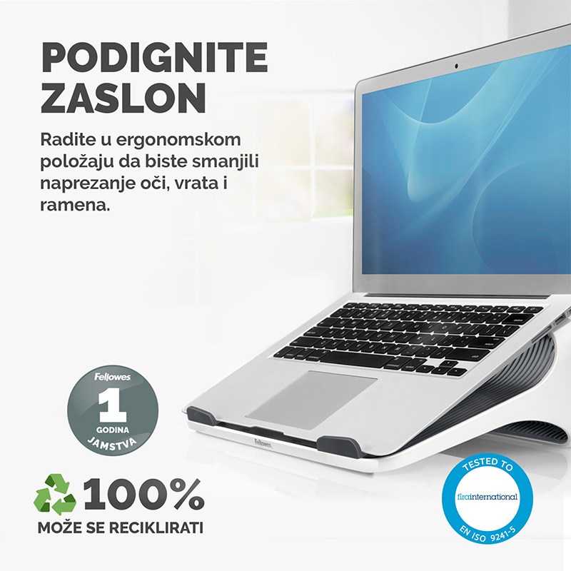 Podignite zaslon prijenosnog računala do razine očiju ublažavajući stres na ramenima i vratu.