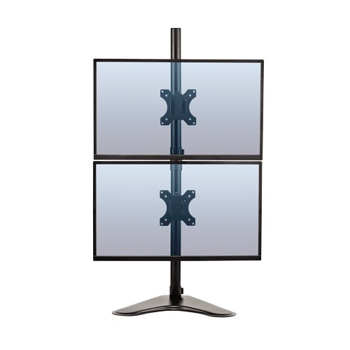 Profesionalni dvostruki samostojeći nosač za monitore u vertikalnom položaju. Podignite svoje monitore kako biste povećali prostor na stolu i smanjili napetost očiju, ramena i vrata. Integrirani sustav za vođenje kablova. Testirala FIRA International Ltd. u skladu s ergonomskim zahtjevima utvrđenim u europskom zakonodavstvu o zdravlju i sigurnosti: EN ISO 9241-5.