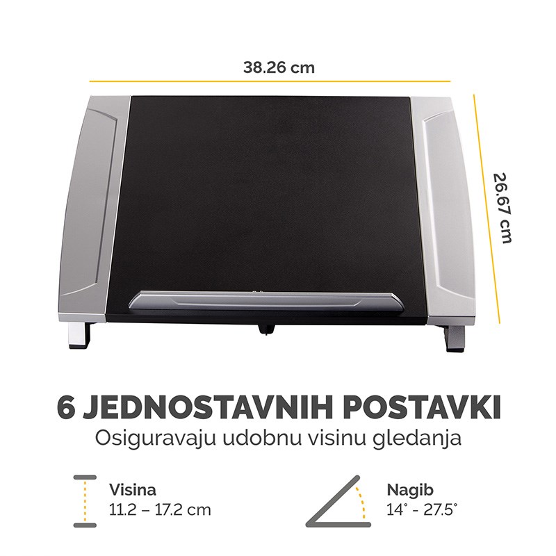 Stalak za laptop, podiže zaslon u visinu očiju da bi se spriječilo naprezanje vrata. Podesivi nagib kuta gledanja, prednji rub sprečava klizanje.