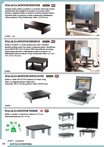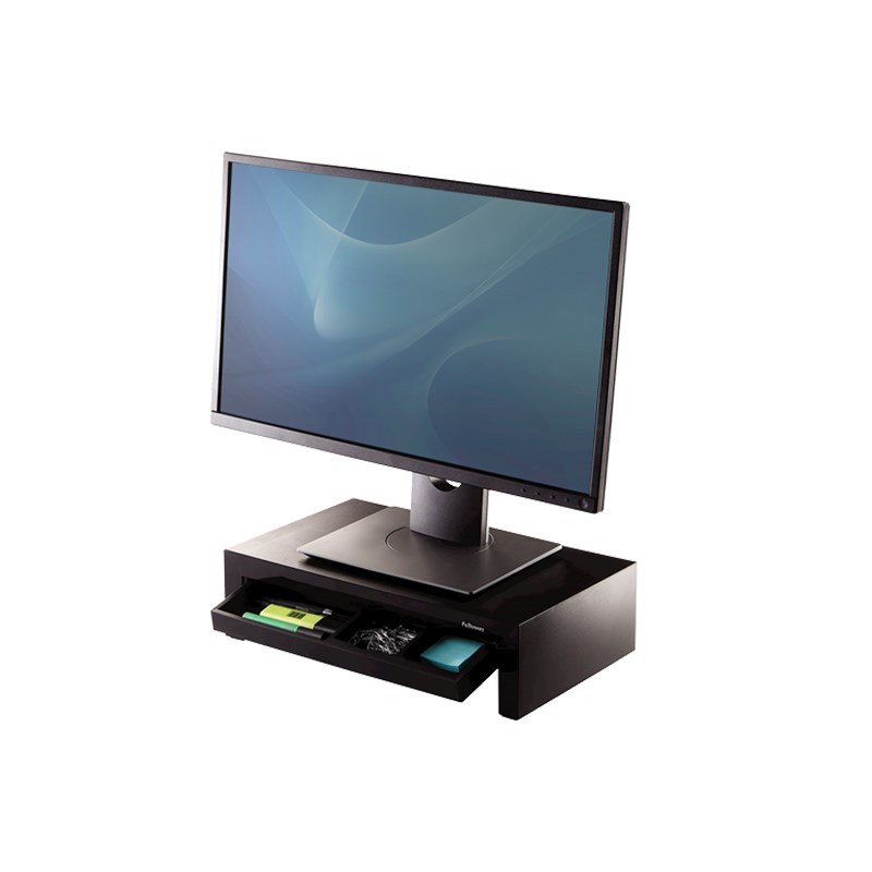 Designer Suites™ stalak za monitor s 3 postavke visine koje možete izabrati kako biste podigli svoj monitor na savršenu visinu. Moderan, elegantan dizajn za moderne monitore širokog zaslona. Ugrađena ladica za pohranu za lakšu organizaciju.