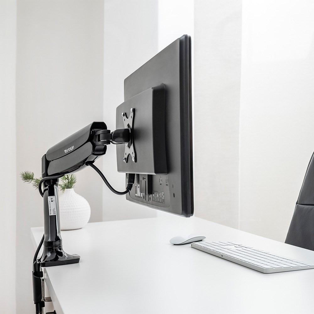Nosač za monitor s tehnologijom plinske opruge za udobno, ergonomsko podešavanje monitora. Nosivost: težina monitora 2-9 kg. Mogućnost rotiranja 270° (+/-135°). Maksimalna visina VESA 414mm