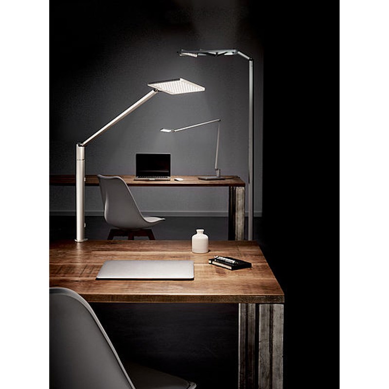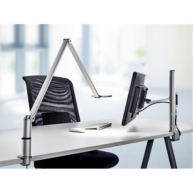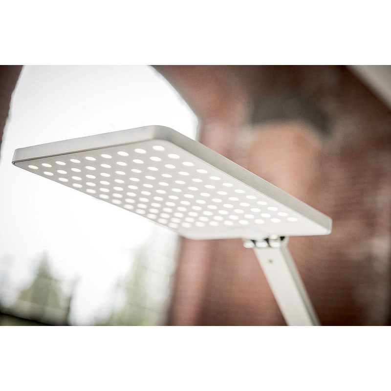 Novus Attenzia stolna LED svjetiljka omogućuje pravilno osvjetljenje i učinkovit, zdrav rad. Zglobna ruka može se fleksibilno prilagoditi u bilo koji položaj. Svjetiljka je modernog, minimalističkog dizajna: tanka glava svjetiljke, elegantni zglobovi i uski profil potporne ruke. Kvalitetna aluminijska završna obrada s anodiziranim i pocinčanim površinama (srebro) i vrhunsko obojene površine