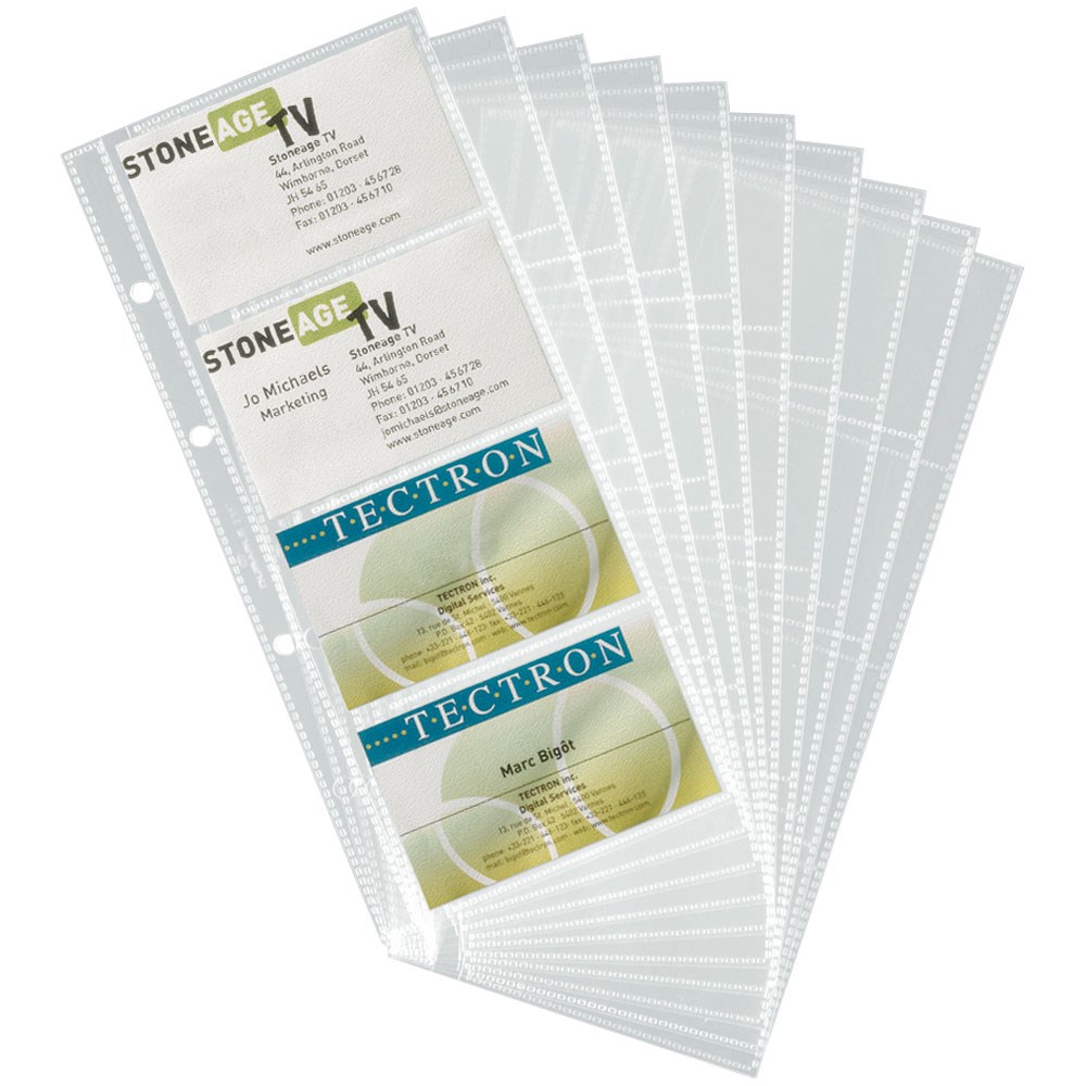 Ulošci za umetanje posjetnica (max 57x90 mm). 4 rupe, svaki za 8 posjetnica. Pakiranje: 10 komada (za 80 posjetnica).