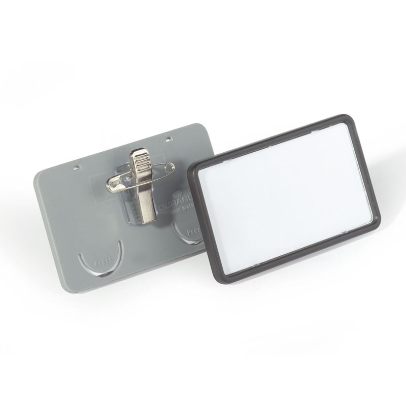 Elegantan etui s okvirom otpornim za ogrebotine, plastični prozorčić, klip za brzo umetanje/zamjenu kartice za ime, ne oštećuje tkaninu. Pričvršćivanje kvačicom ili zihericom.
