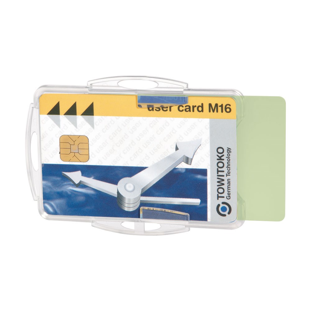 Plastični etui za nošenje sigurnosne dvije ID kartice. Može se koristiti u vertikalnom i horizontalnom položaju.