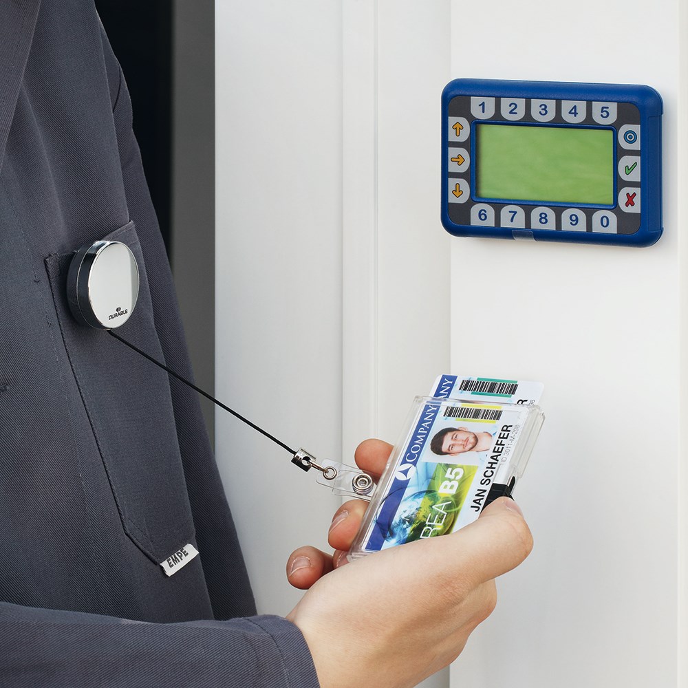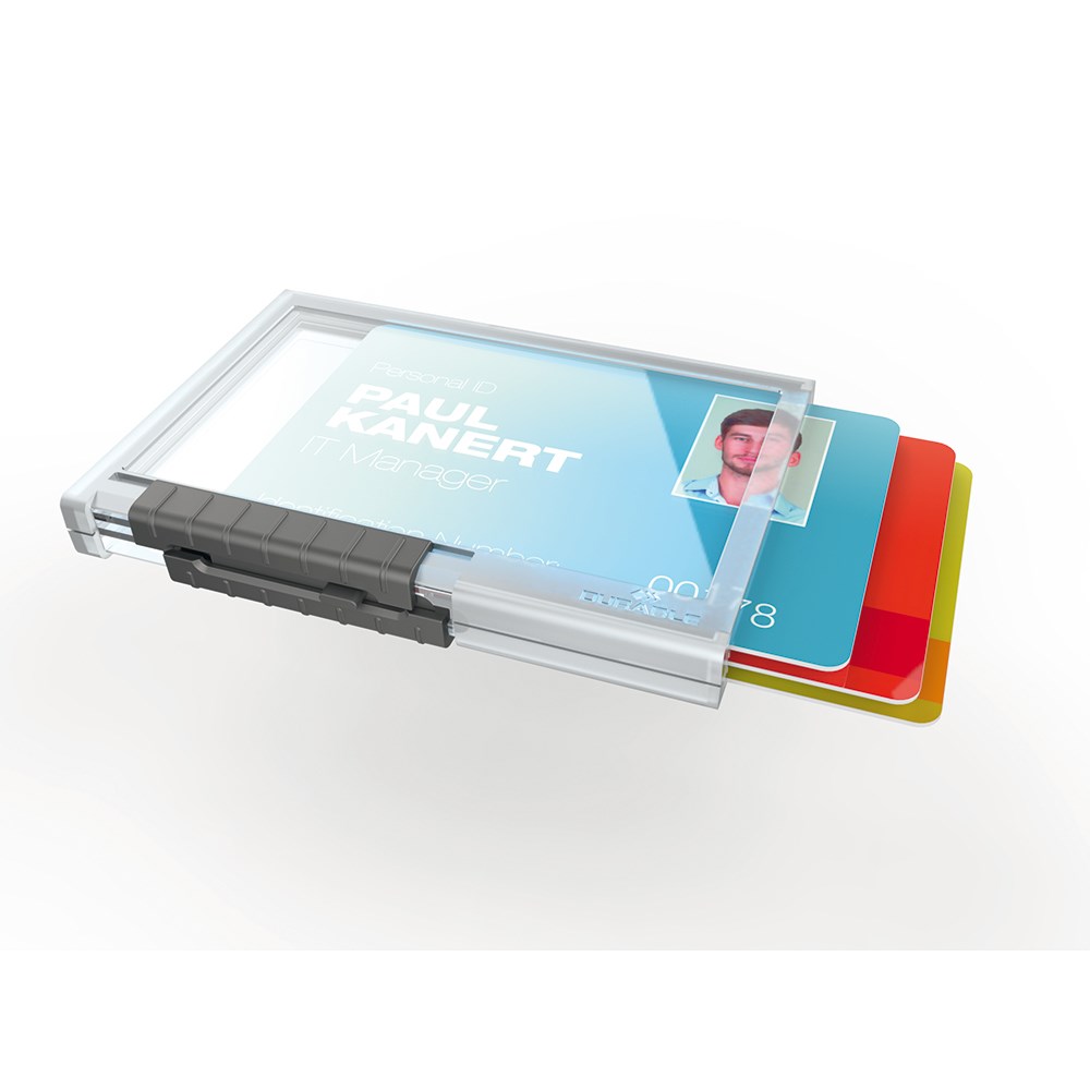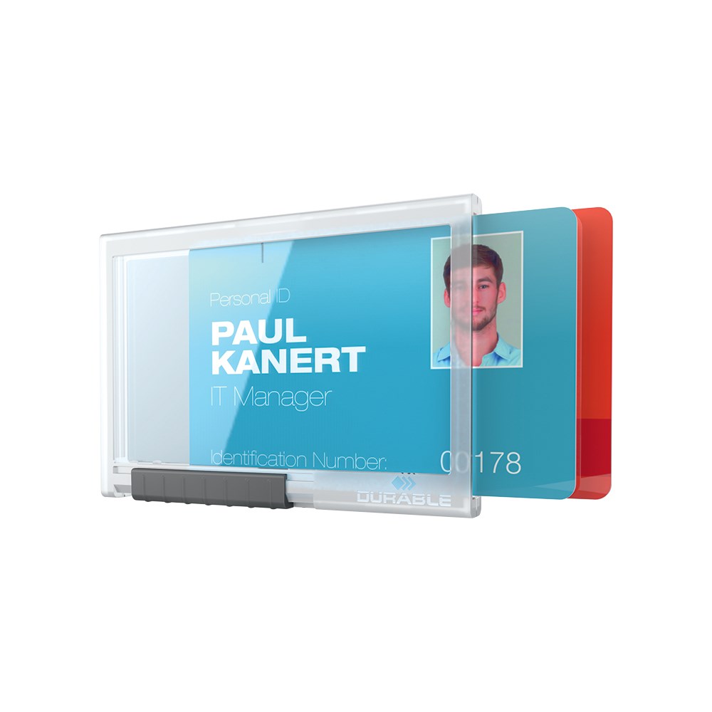 Držač kartice PUSHBOX idealan je za zaštitu osjetljivih RFID kartica i kodiranih kartica. Kartica je potpuno zaštićena od pada, prašine i drugog, a ujedno potpuno vidljiva i lako čitljiva. Jednostavno izlačenje pomoću klizača. Može se koristiti u portretnom ili pejzažnom formatu, te kombinirati s tekstilnim lančićem ili poteznom kopčom.
