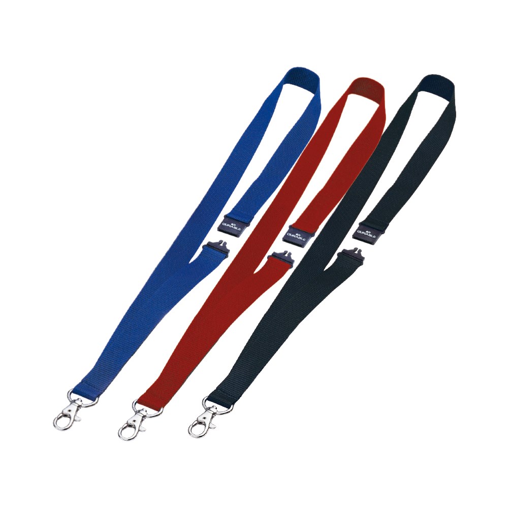 Tekstilna vrpca sa sigurnim zatvaranjem koje se otvara ako se prejako povuče i krabinerom. Idealno za kartice s imenima ili držače za osobne iskaznice s izrezom za kopču ili kao privjesak za ključeve.