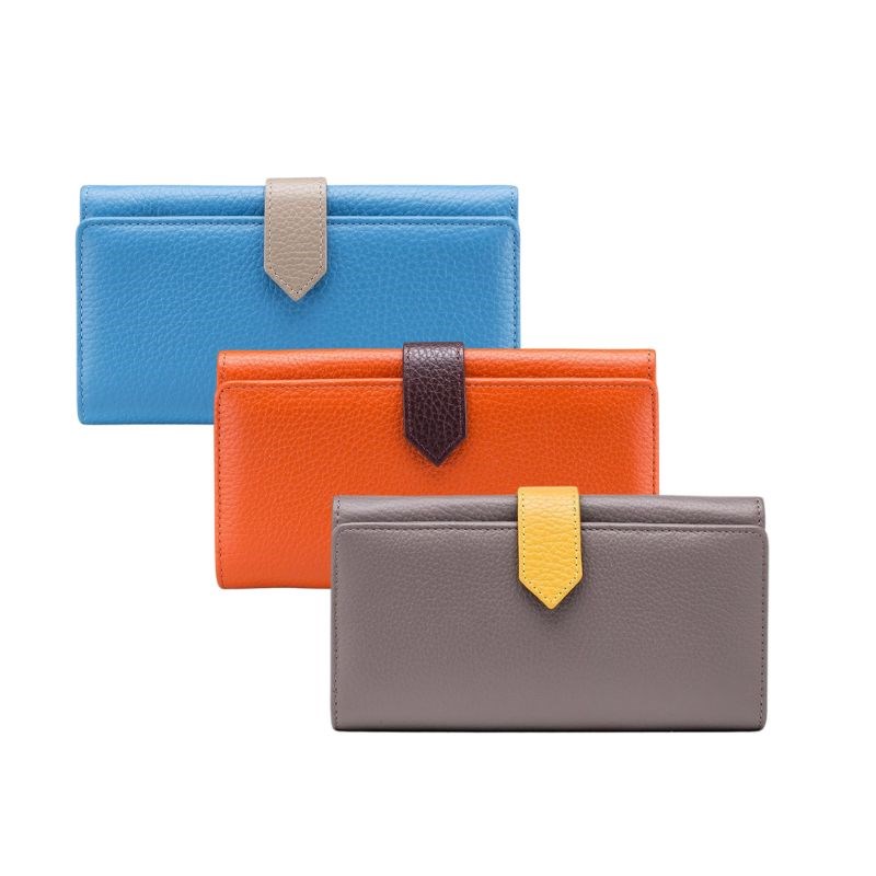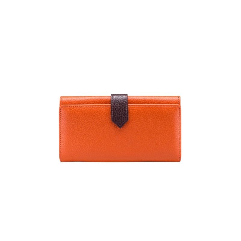 Ženski novčanik Sofia od obojane kože, unutra utori za kredit kartice, karte i ostale dokumente, unutarnji sigurnosni džep i odjeljak za novčiće. Zatvaranje: gumb na kopčanje.