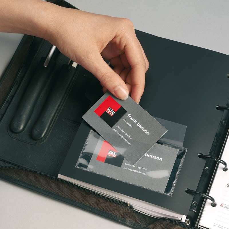 Praktični samoljepivi džepići od prozirne folije za umetanje posjetnice ili sadržaja na ponude, fascikle, mape i drugo.