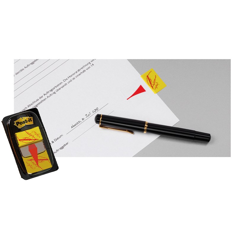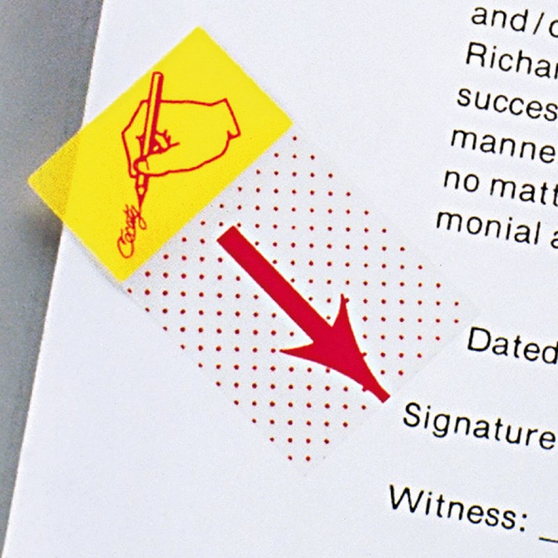 Samoljepive žute zastavice s otisnutim simbolom za označavanje mjesta potpisa. Uklanjanje bez tragova, mogućnost ponovnog ljepljenja.