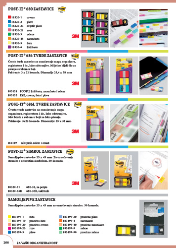 Samoljepive zastavice za označavanje i indeksiranje stranice. Uklanjanje bez tragova, mogućnost pisanja, mogućnost ponovnog ljepljenja.