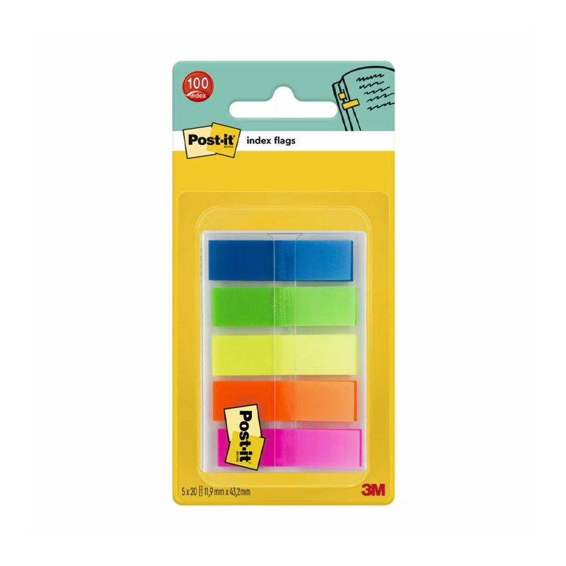 Zastavice - samoljepivi signiri za označavanje u listićima. Uklanjanje bez tragova, mogućnost ponovnog ljepljenja, mogućnost pisanja. Translucent boje (plava, zelena, žuta, narančasta, crvena), 5x20 komada 11,9x43,2 mm u OTG dispenzeru.