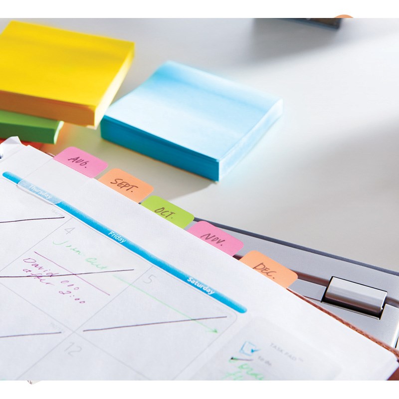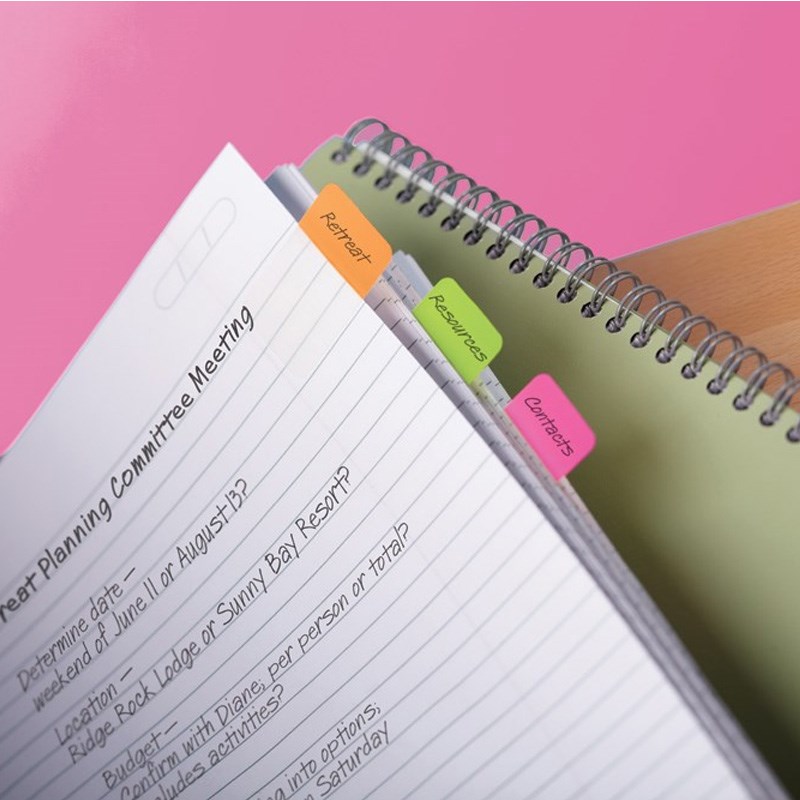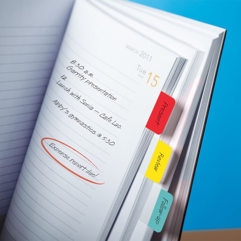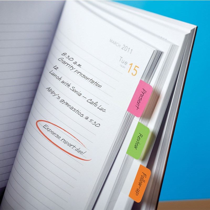 Čvrste tvrde zastavice za označavanje mapa, organizera, registratora i dr., lako odstranjive. Mat u boji. Mogućnost pisanja sadržaja bilo kakvom grafitnom ili kemijskom olovkom.