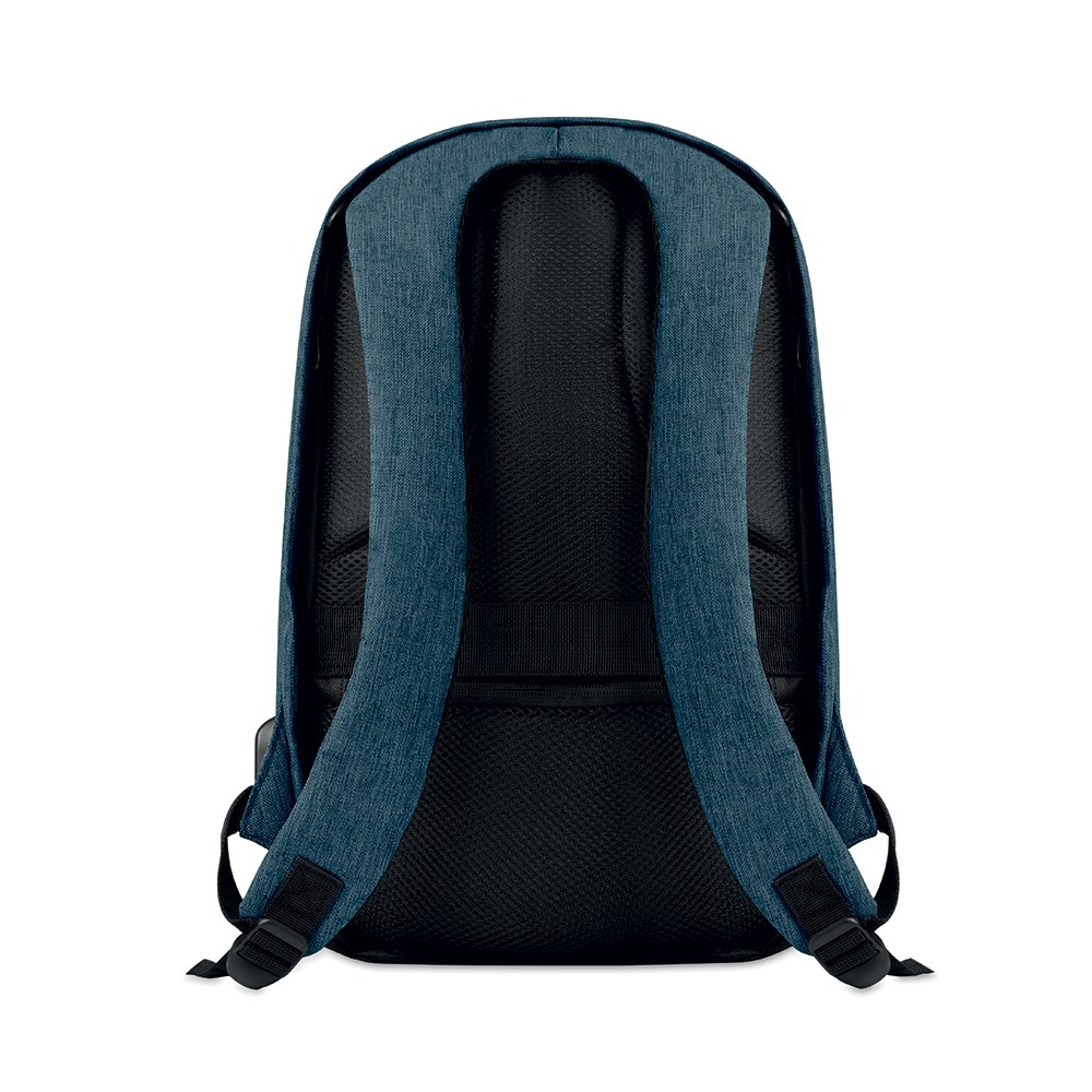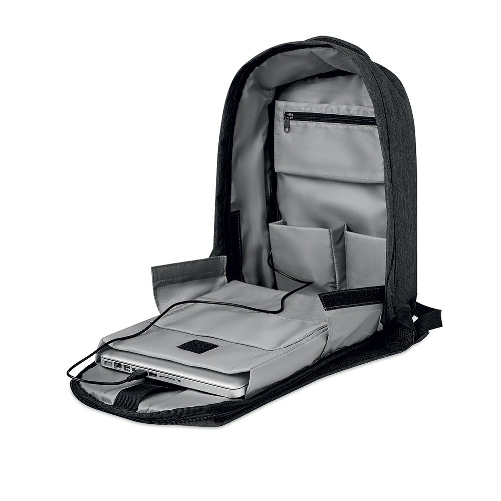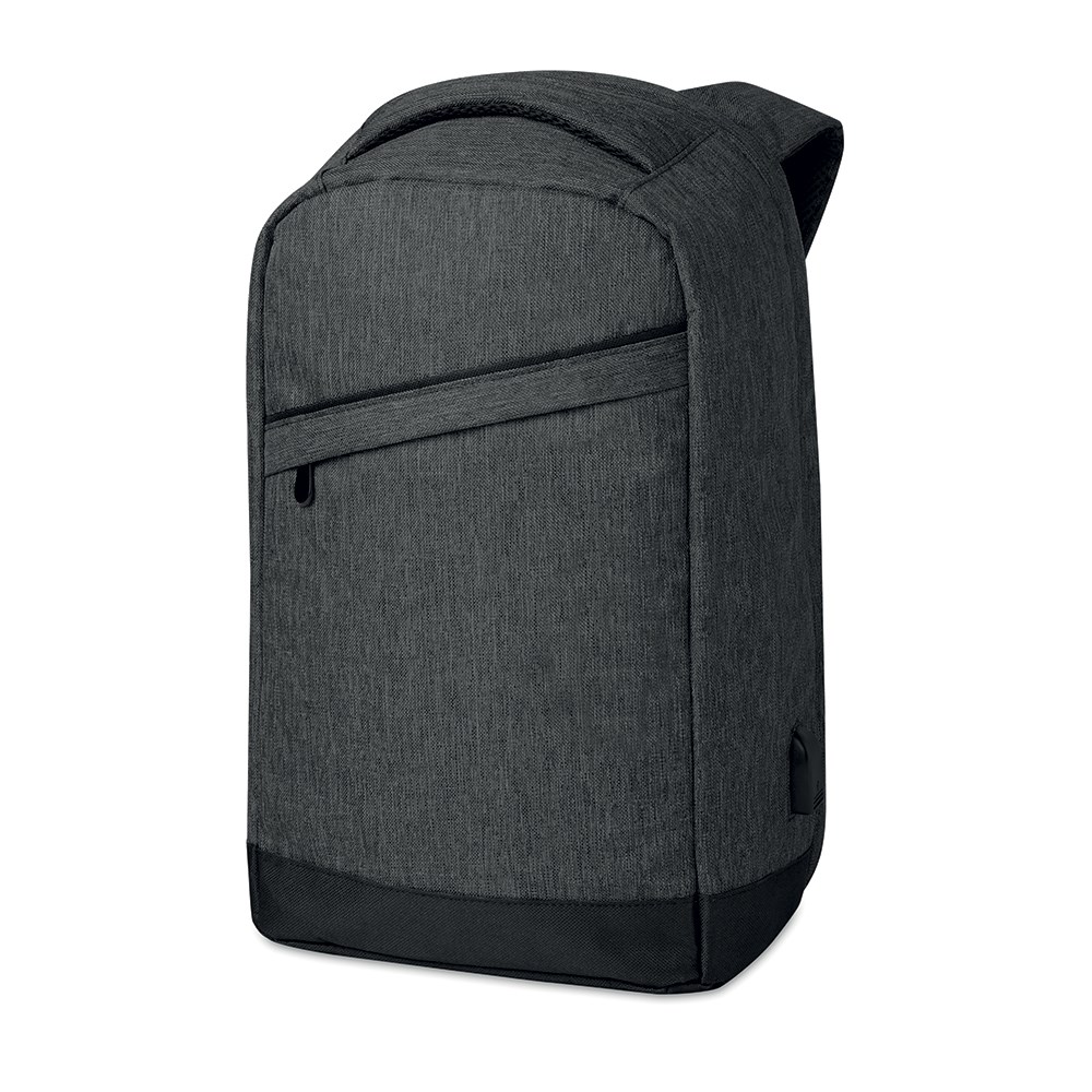 Ruksak od 600D poliestera s podstavljenim naramenicama. Glavni pretinac za laptop 13“ i usb punjenje. Dimenzije: 26x45x13 cm.