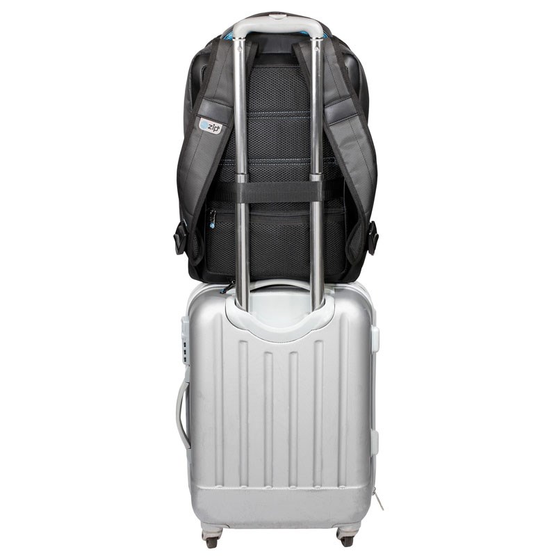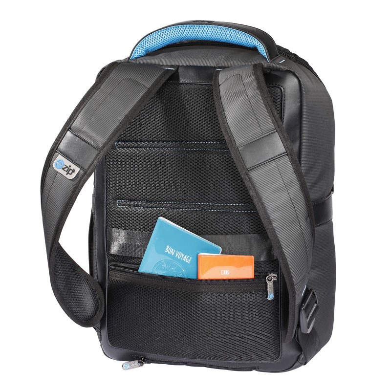 Ruksak E-ZIP® je prvi pametni ruksak povezan s mobilnom aplikacijom koja korisnicima omogućuje pristup različitim funkcijama: upozorenje za krađu, lokalizaciju, obavijest o otvorenom ruksaku, upozorenje o zaboravu. Ovaj je ruksak udoban zahvaljujući podstavljenim leđima, širokim ergonomskim naramenicama i ojačanoj ručki od mrežaste tkanine za transport. Ima jedan prostrani pretinac (kapacitet pohrane 22 L), bočni džep, podstavljeni pretinac za računalo od 15,6 inča, tajni skriveni džep na stražnjoj strani da sakrijete svoje papire, kao i pretinac za pohranu vašeg 10-inčnog tableta. Zaštitni poklopac protiv kiše. Patentni zatvarač sa senzorima omogućuje povezivanje torbe s namjenskom mobilnom aplikacijom Genius Objects.