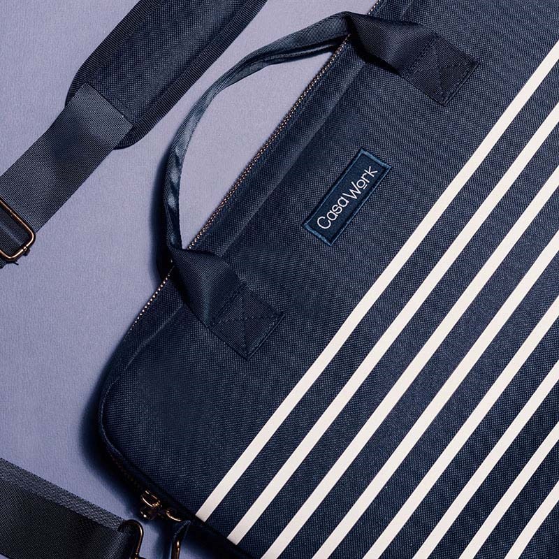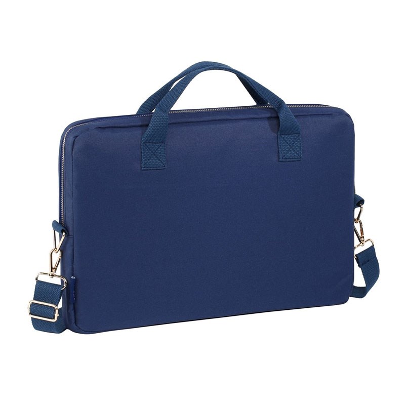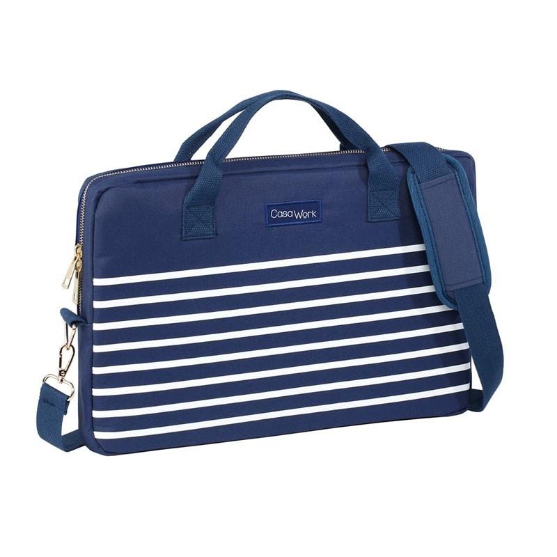 Torba za laptop kompatibilna za računala do 15,6″, idealno 15″. Navlaka izvana od poliestera od 600 dena s plavo-bijelim uzorkom, a s unutarnje strane od mekanog crvenog neoprena kako ne bi oštetio laptop. Kompaktna pjena koja dobro štiti računalo. Ručka i remeni za jednostavnije nošenje.