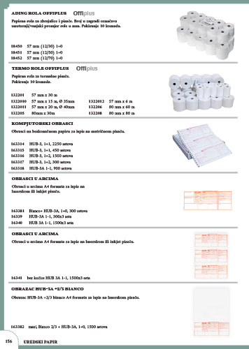 Papirna rola za kalkulatore s pisačem (zbrajalice) i matrične pisače. Broj u zagradi označava nutarnji/vanjski promjer role u mm.