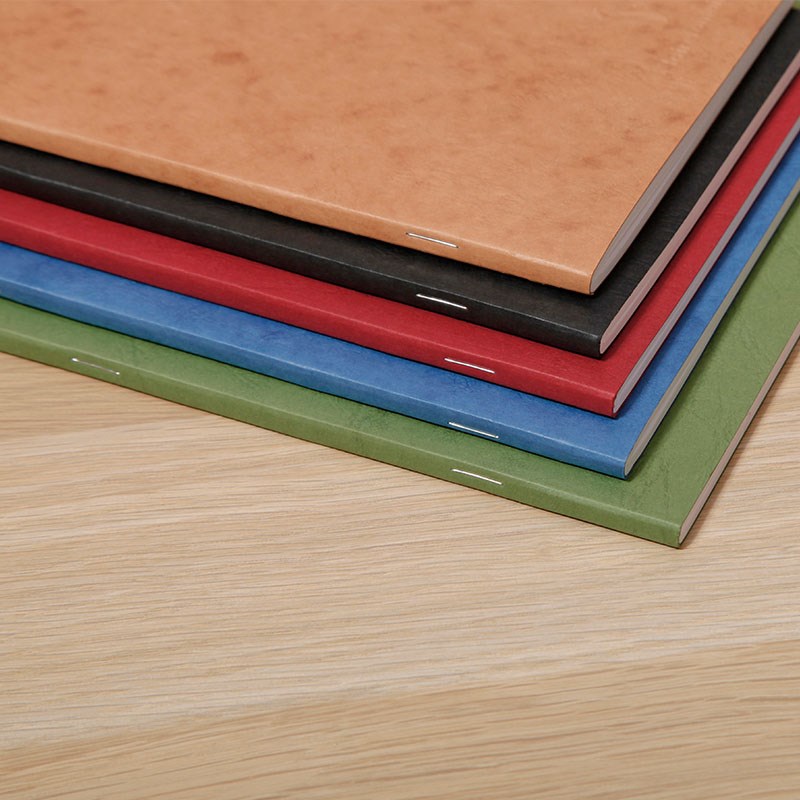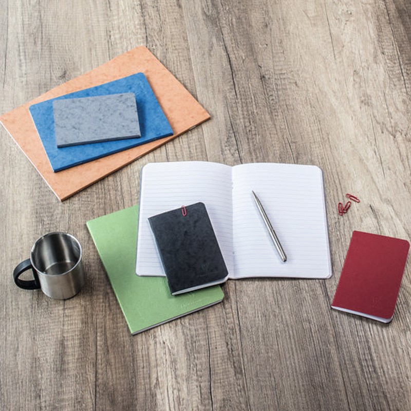 Bilježnica s koricama umjetne kože. Uvez klamanjem. Certifikat: PEFC 100% A5 format. Broj listova: 48