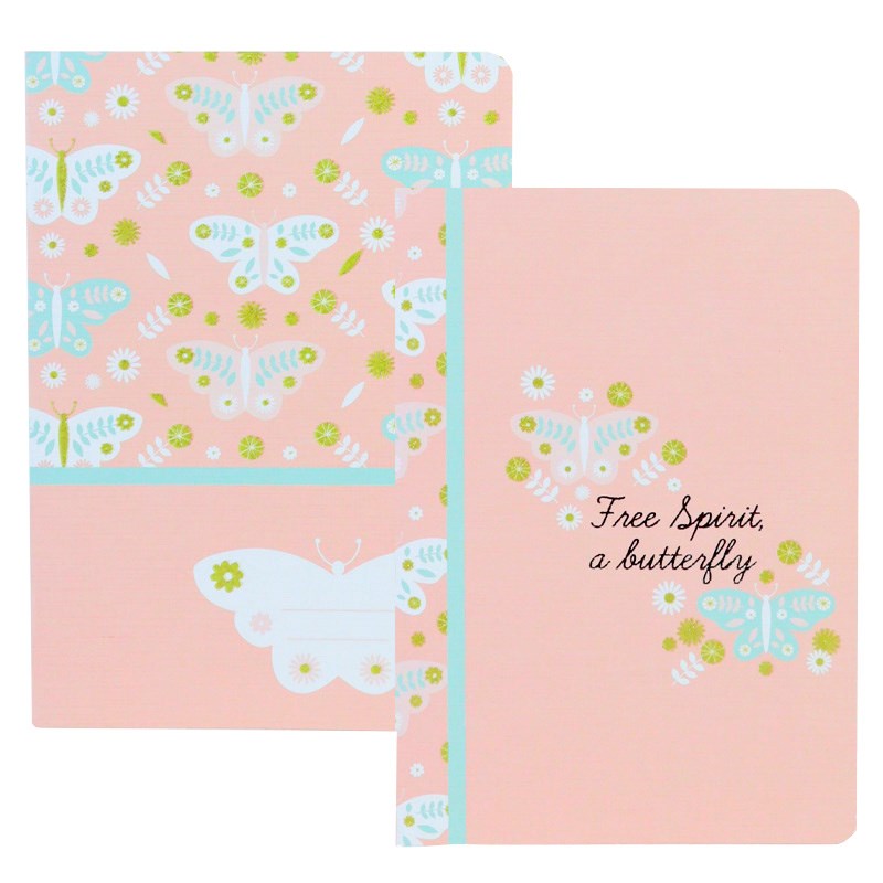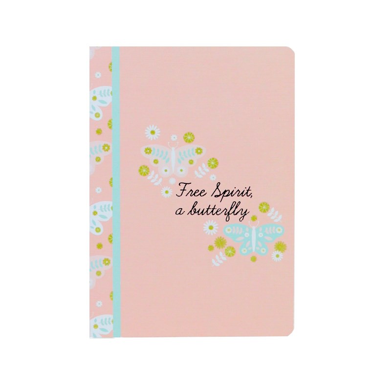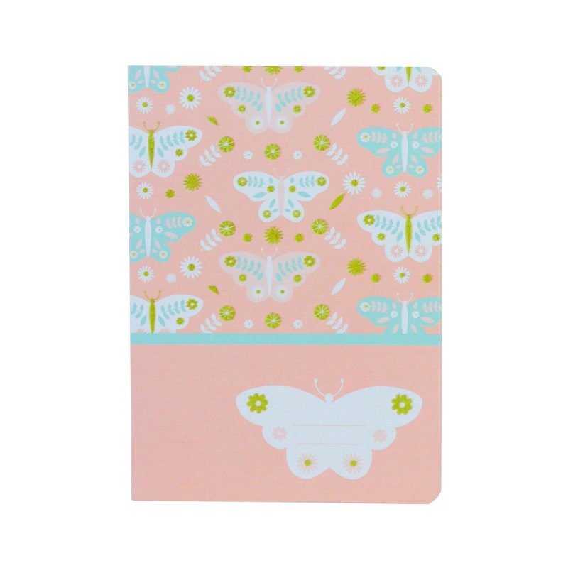 Bilježnica mekih korica s detaljima leptirića, klamano, 48 listova kvalitetnog 90 gr. papira. 2 motiva sortirano.